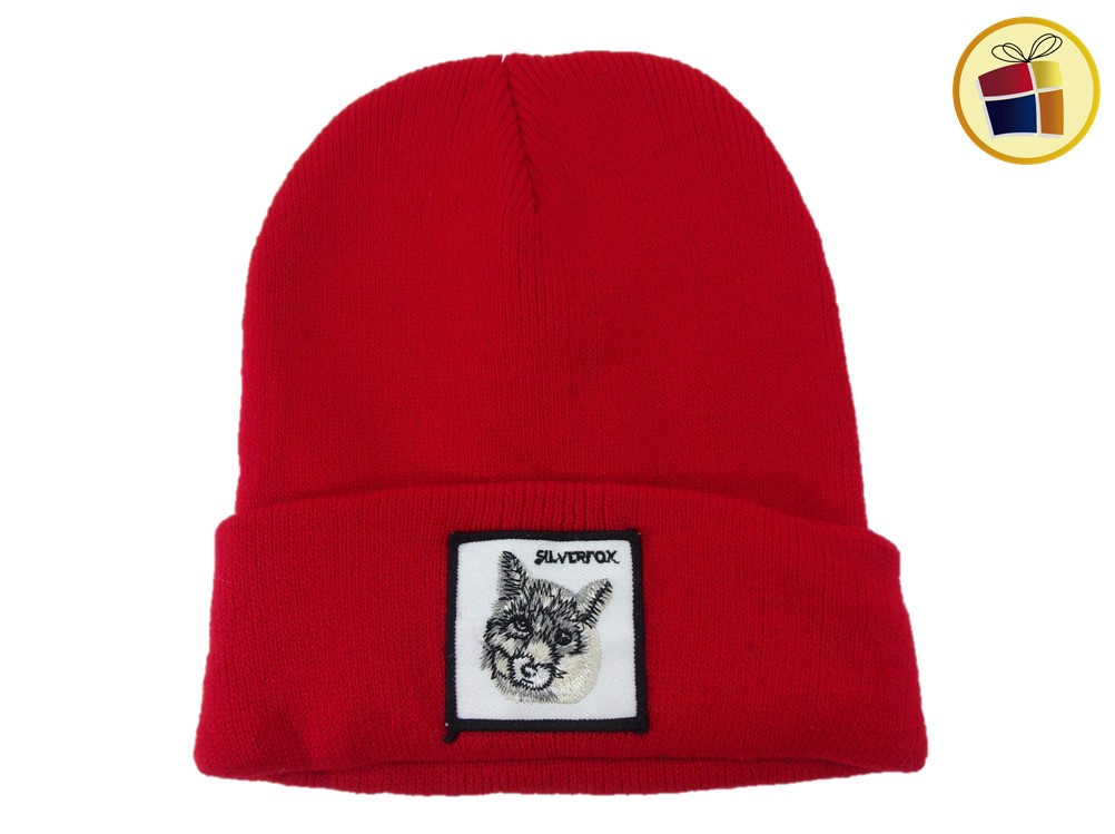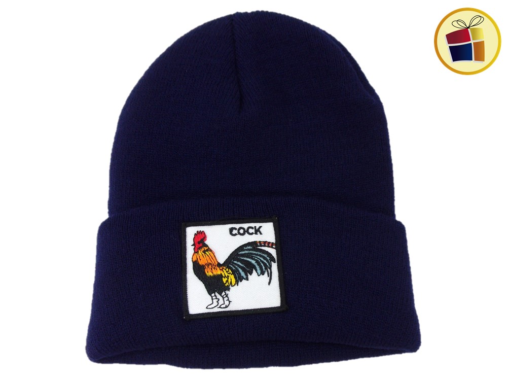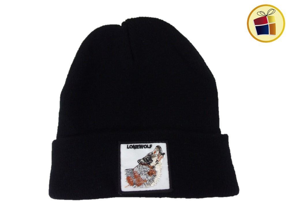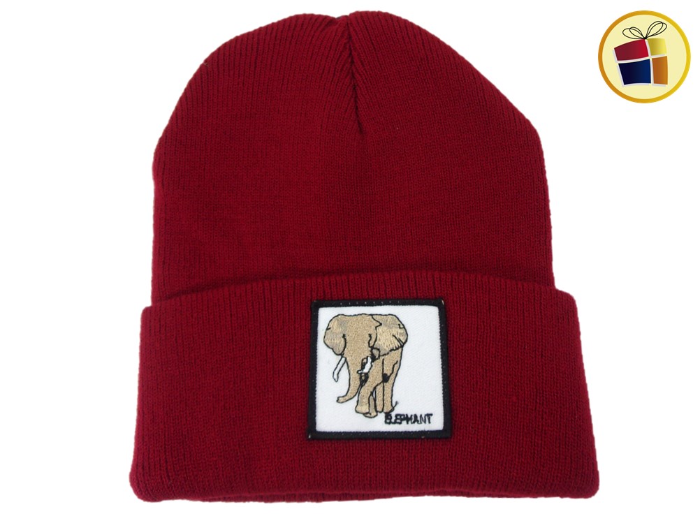 Gorro de lana liso con aplique de diversos animales.