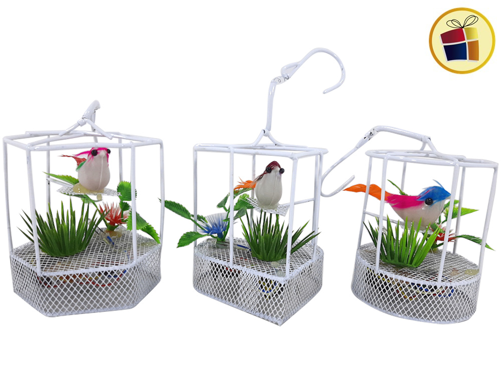 ADORNO JAULA C/ PAJARITO Y SONIDO 8CM (047/885226)