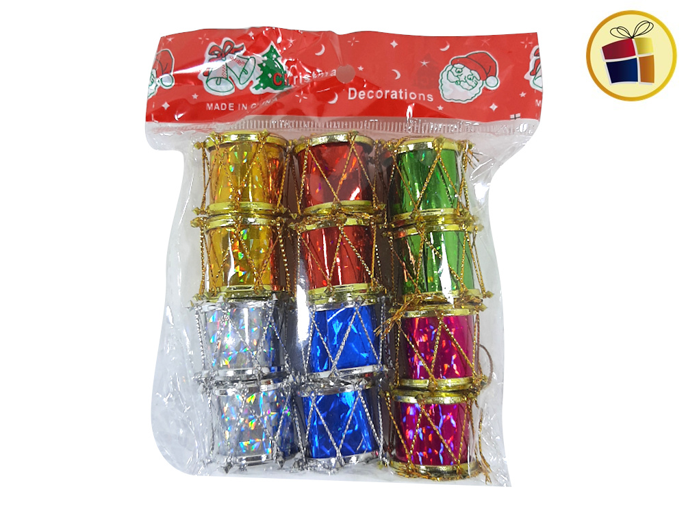 Adorno tamborcitos navideño 12 unidades en bolsa.