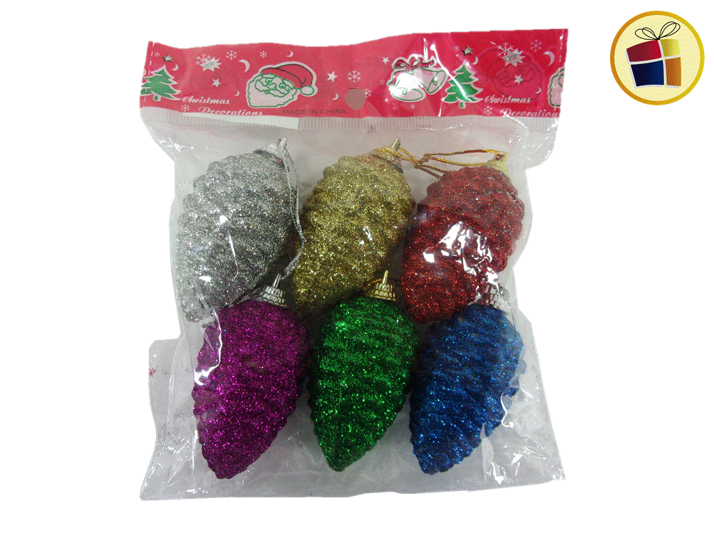 Adorno piña navideña 6 unidades lisa Brillosa de colores de 7 cm de altura cada uno.