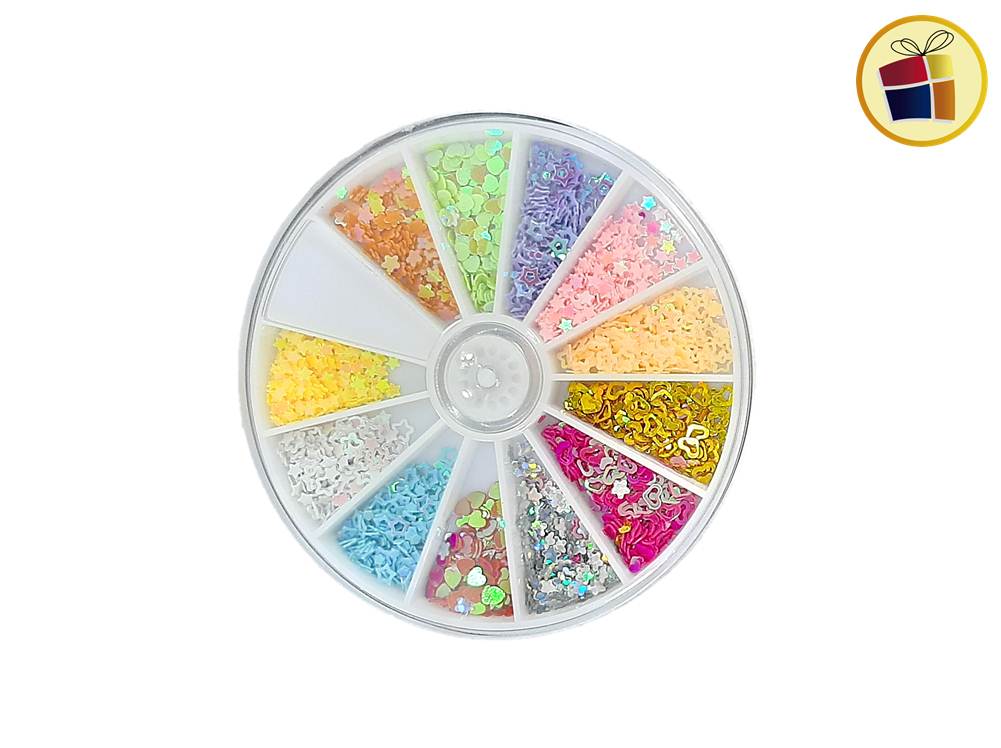 Aplique para uñas, incluye estuche con divisores, surtido en color y modelos de apliques.