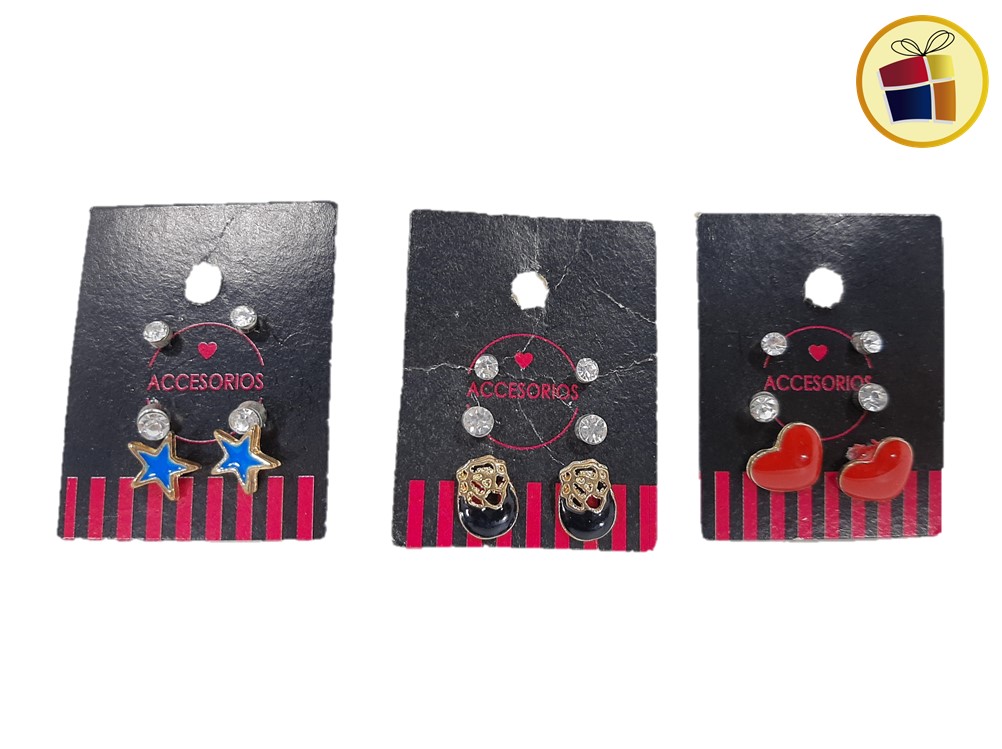 Aro x 3 pares, 2 pares de estras de distintos tamaño y 1 par con forma de flor, estrella, corazon esmaltado surtido en color.