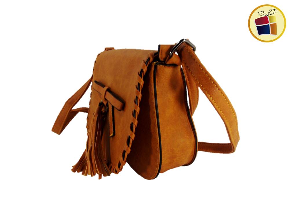 Con correa regulable, 1 cierre, 3 bolsillos internos, con interrior forrado, 1 bolsillo con cierre en la parte posterior,con tapa la cual contiene un moño mas 2 colgantey detalles a los bordes.
