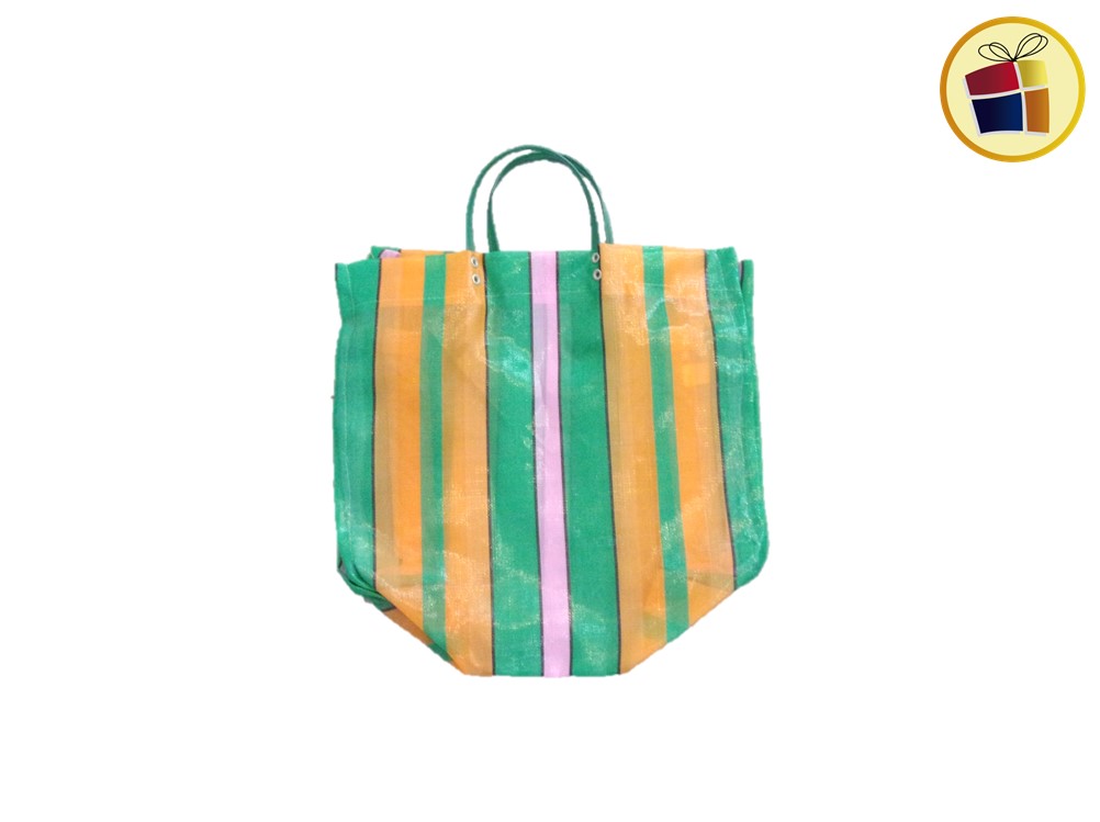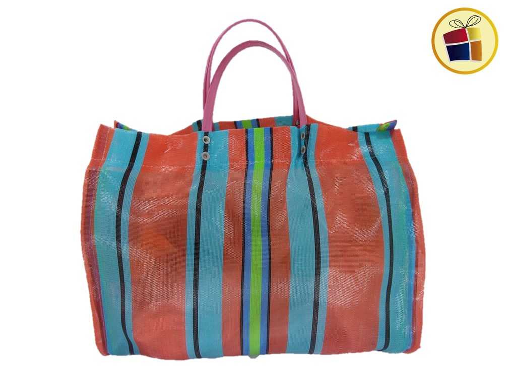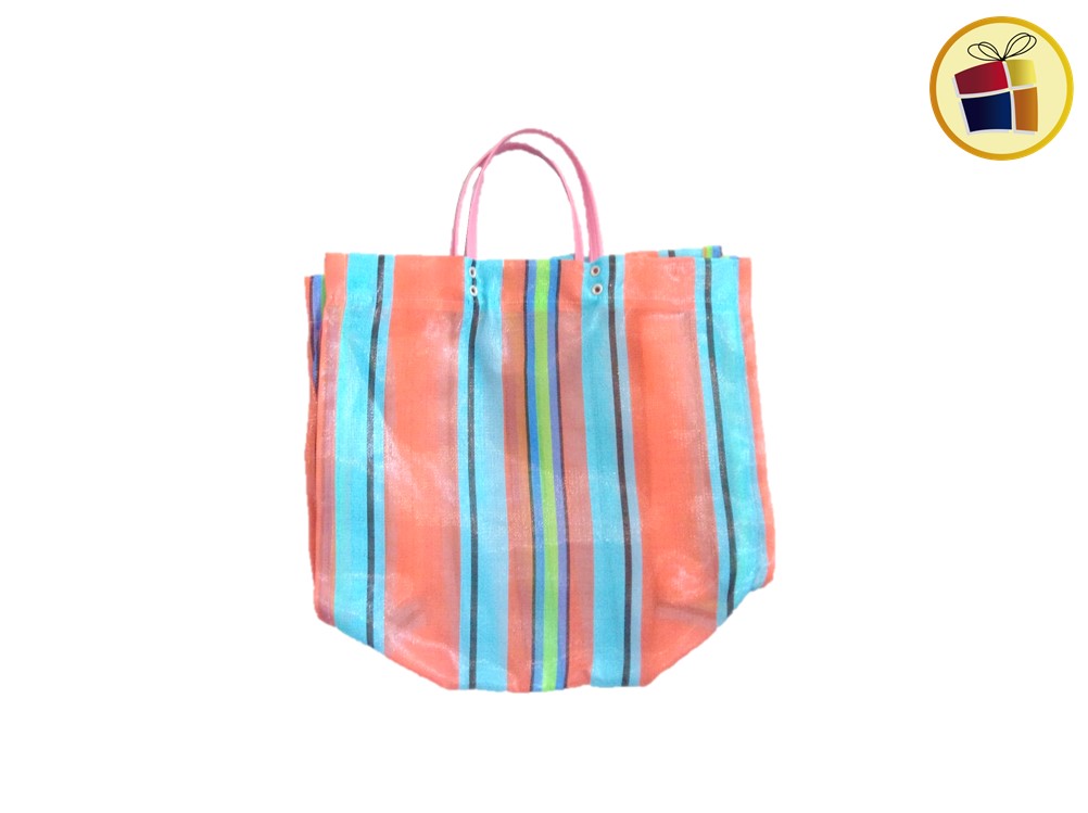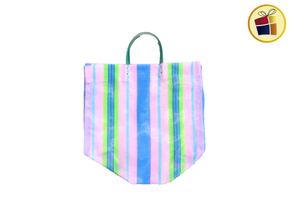 Bolsa de compra a rayas con manija de plastico, ideal para realizar las compras.