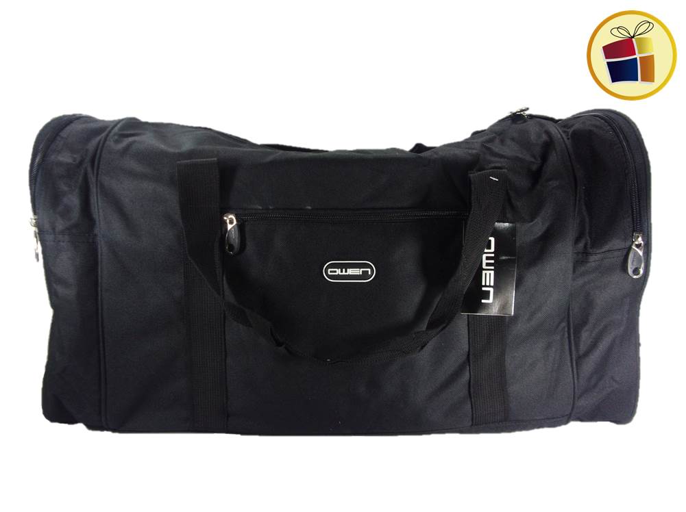Bolso de viaje grande owen contiene cuatro bolsillo con cierre, dos en la parte del costado, una el parte del medio, y otra en la parte de arriba. Tambien contiene manijas y tiras regulables.