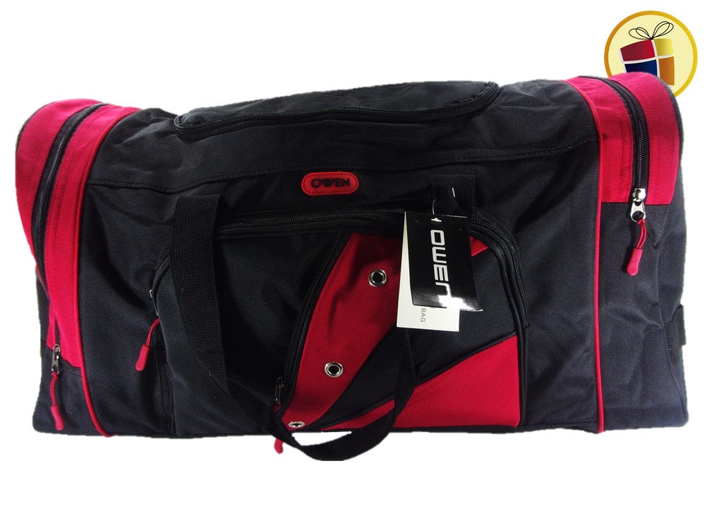 Con ojal en el frete 2 bolsillos con cierre, 2 bolsillos con cierre a los costados, manija para agarrar en los costados y en la parte superior, correa regulable.