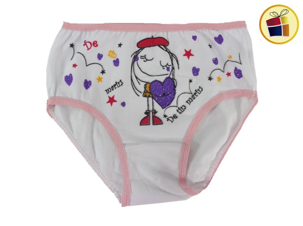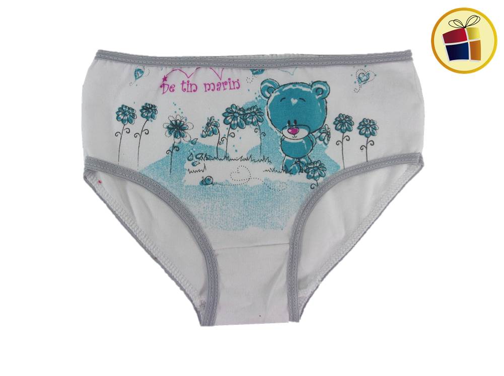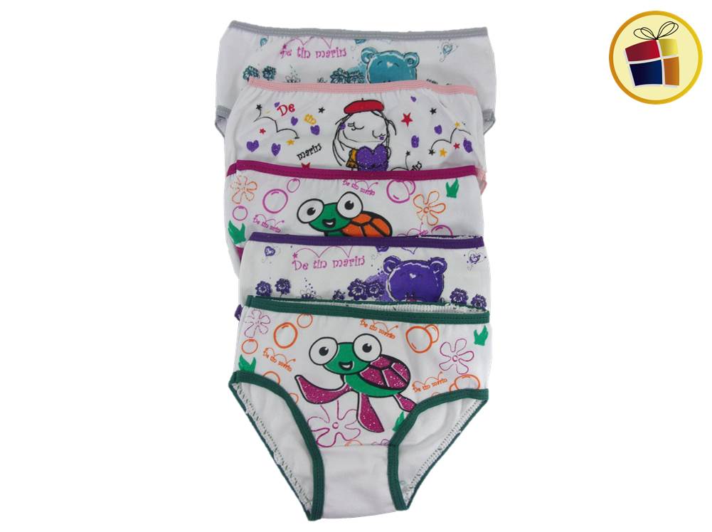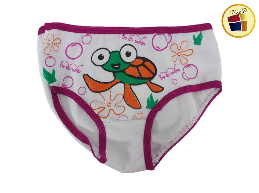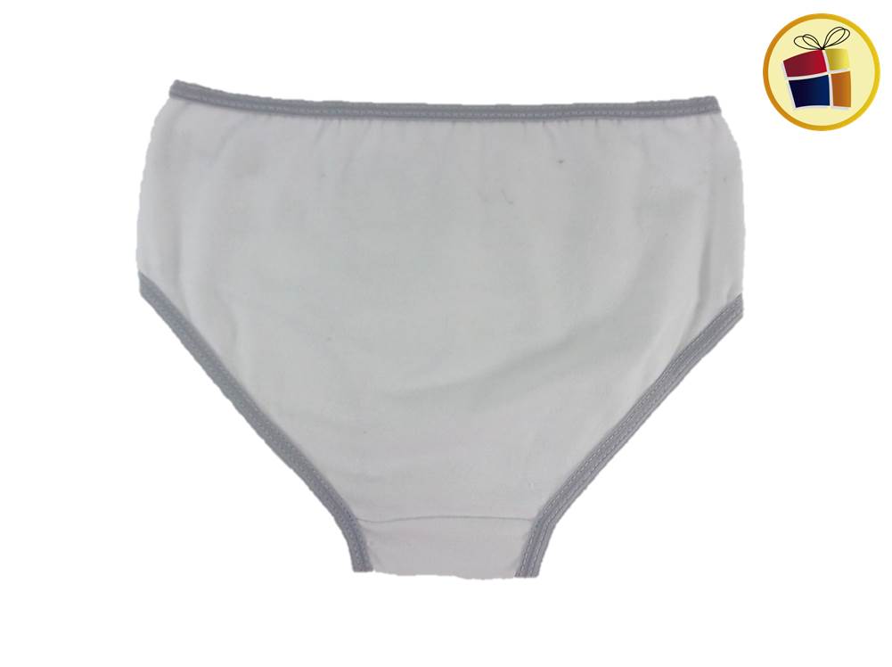 Bombacha para nena blanca con estampado en dibujos con borde de color. desde el talle 1 al 3.