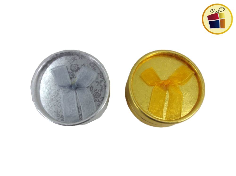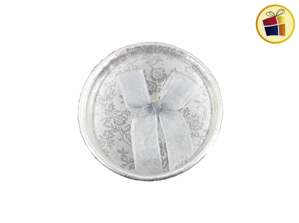 Caja redonda de regalo. Brillosa Satinada con cinta de tul.