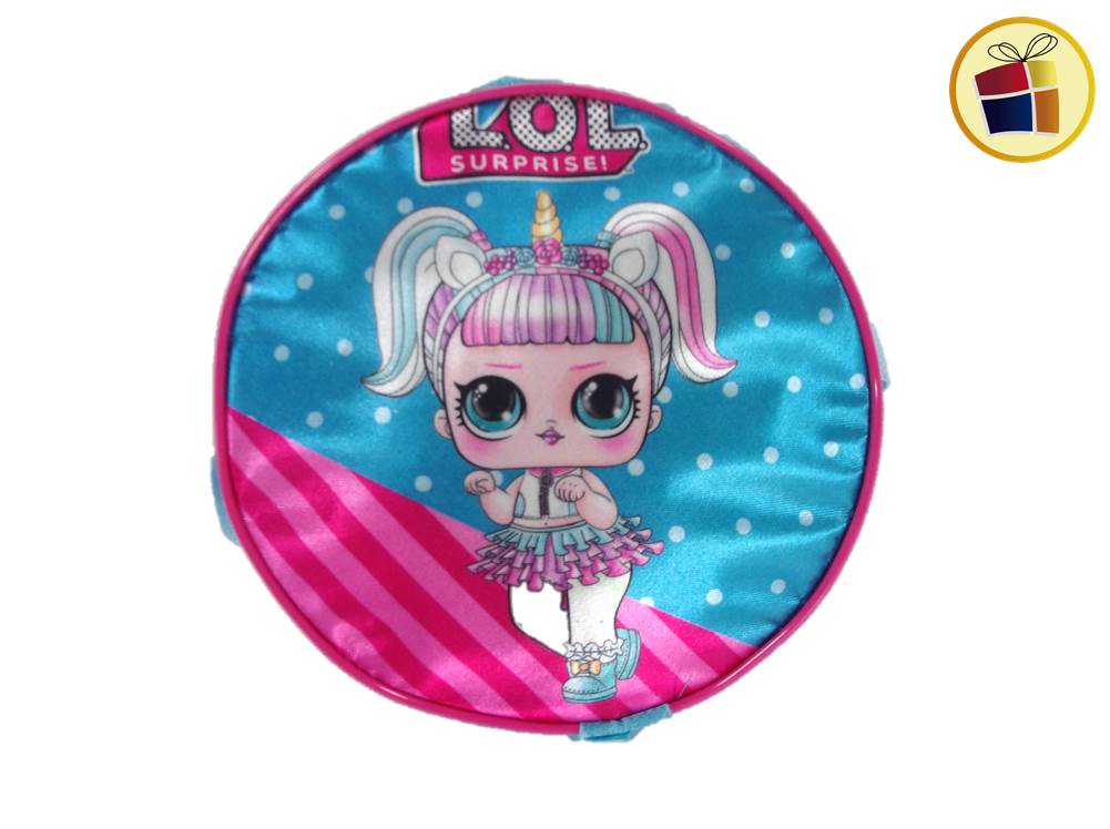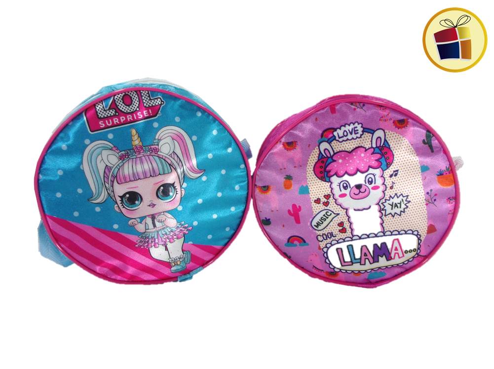 Cartera redonda infantil estampada con tiras.