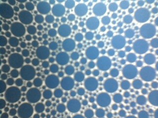 De un lado circulos con el fondo blanco, del otro con el fondo azul.