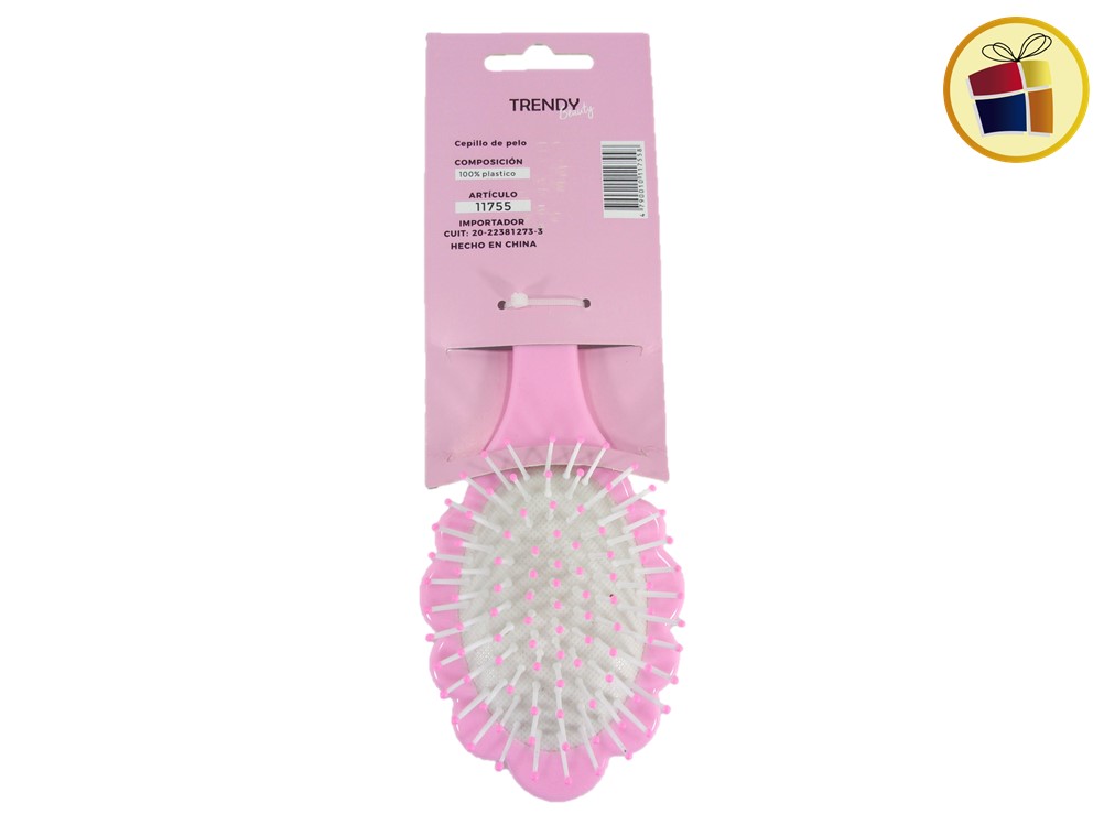 Cepillo para cabello infantil forma flor, con surtido de aplique en goma.