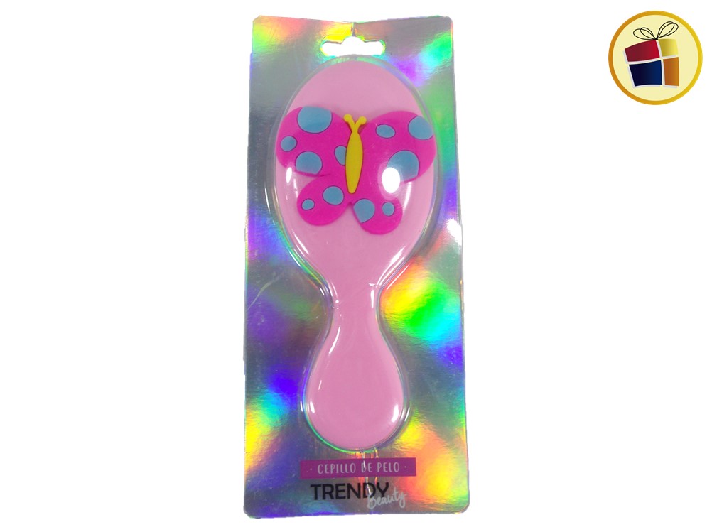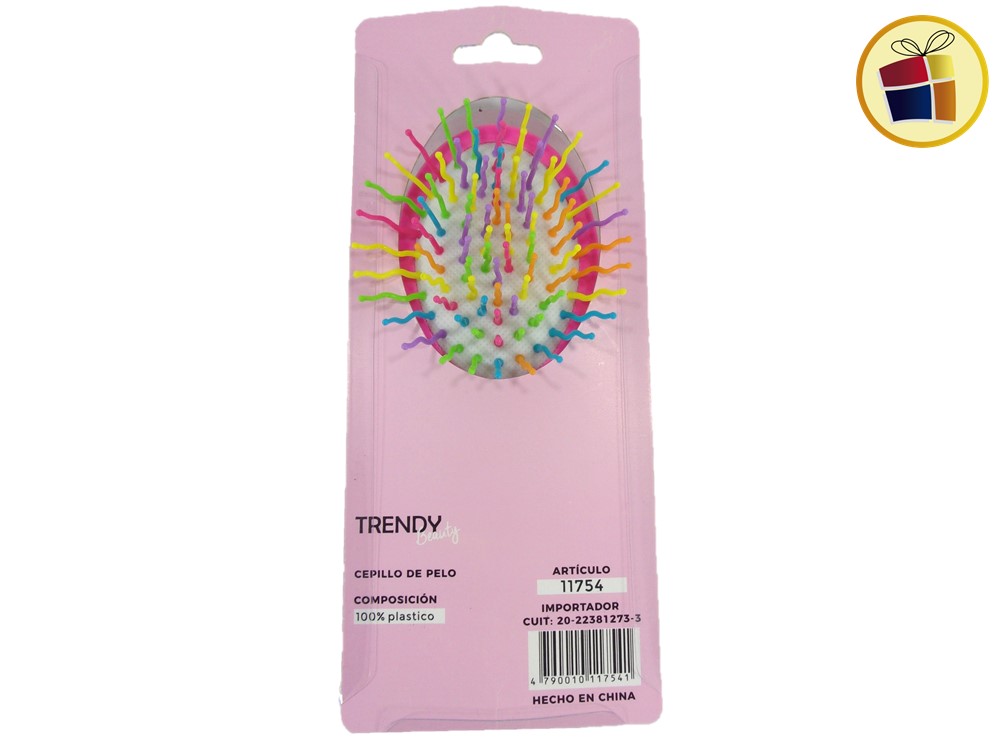 Cepillo para cabello infantil oval con aplique surtido en goma.