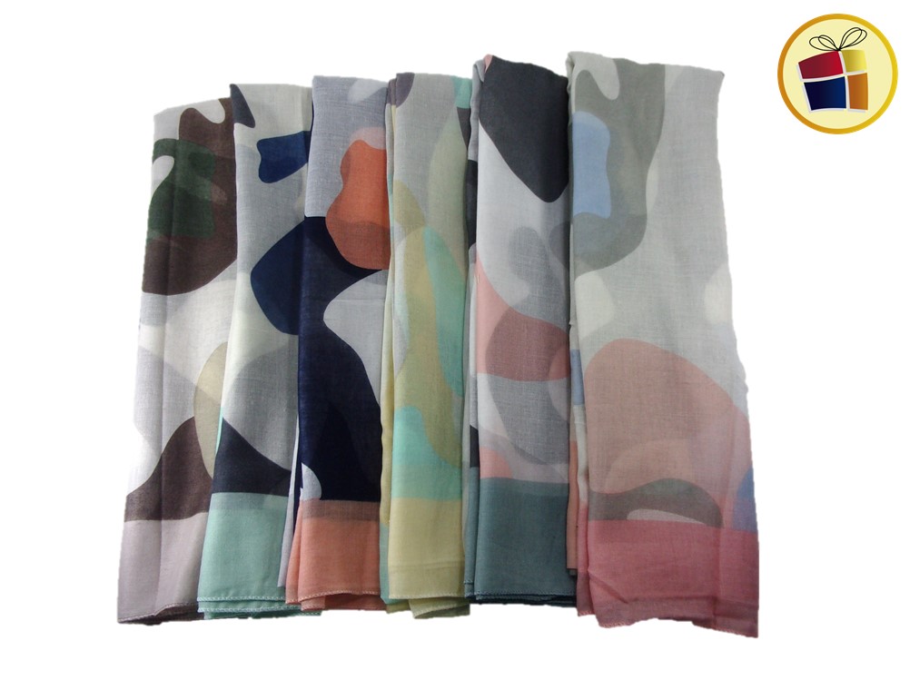 Chalina para dama rectangular estampado militar (camuflado) de diversos colores.