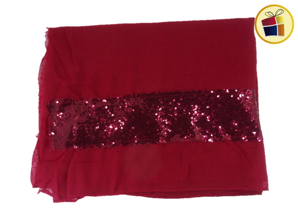 Chalina para dama rectangular con lentejuelas en uno de los lados.