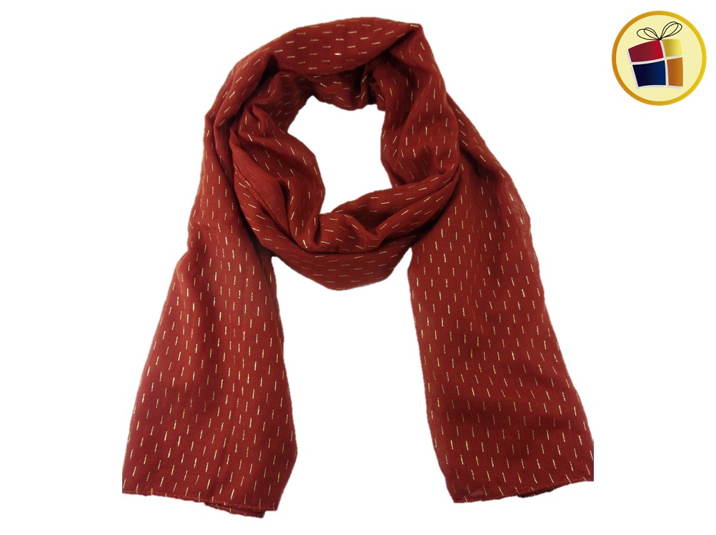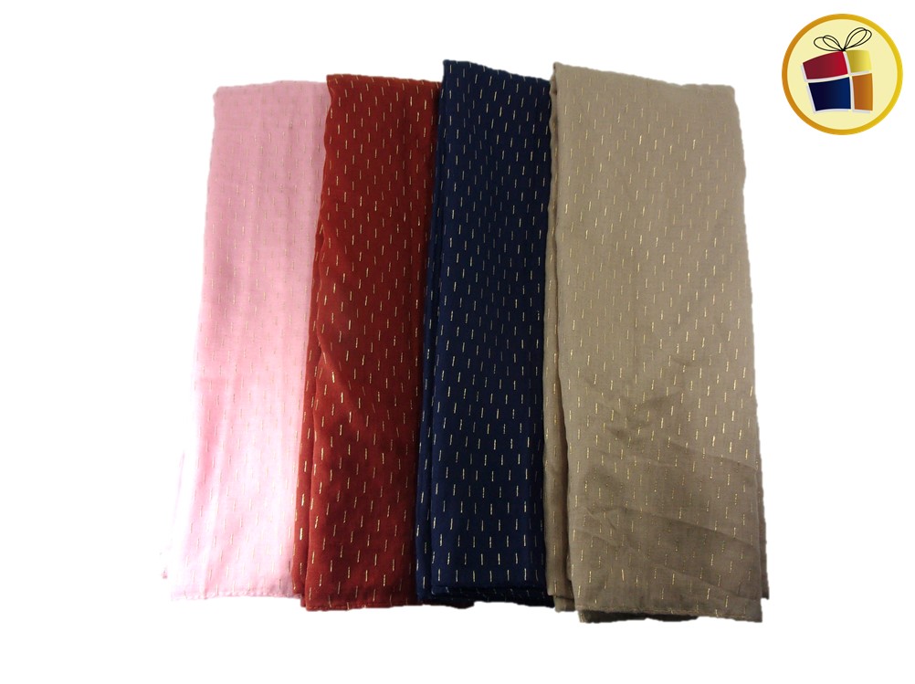 Chalina para dama rectangular con un detalle de brillo dorado.
