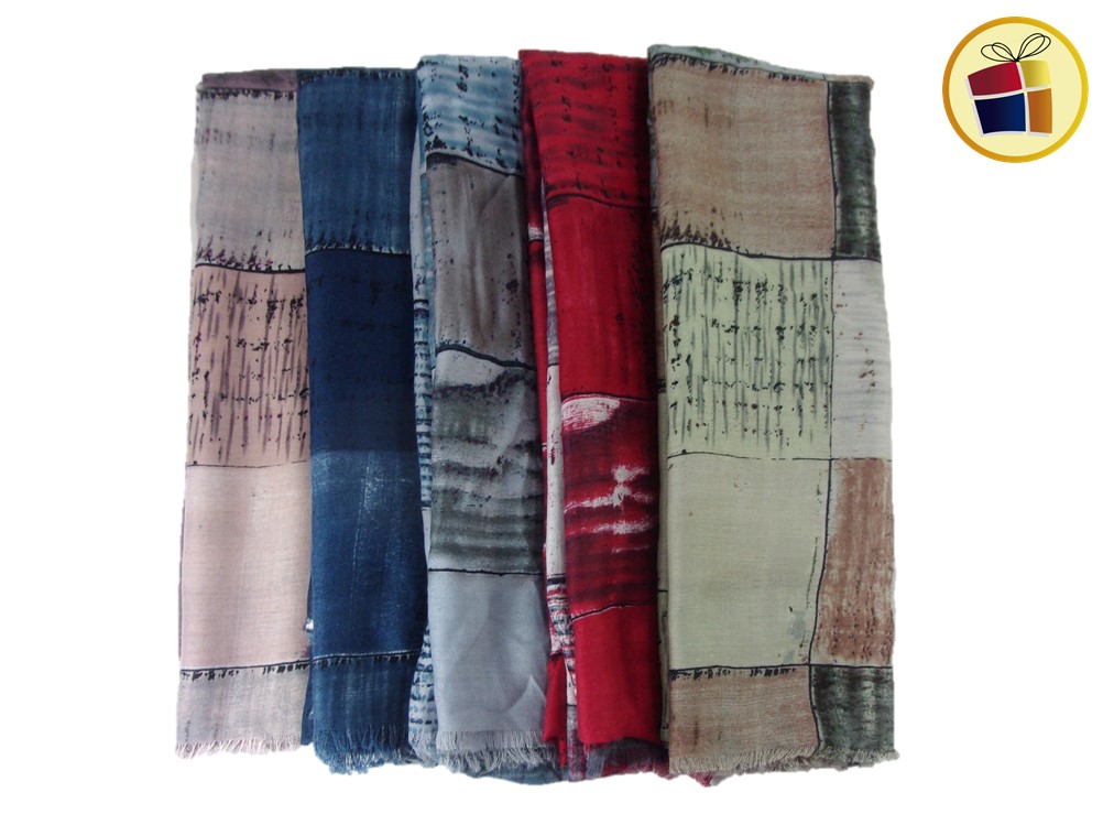 Chalina para dama rectangular gruesa estampada estilo madera en cuadrados.