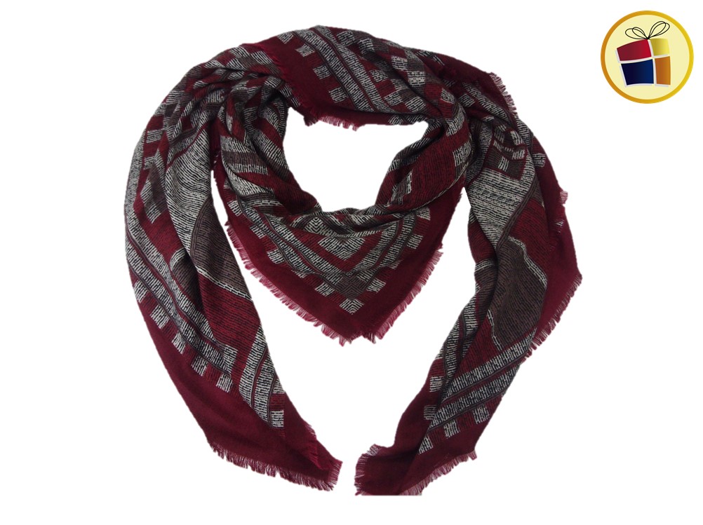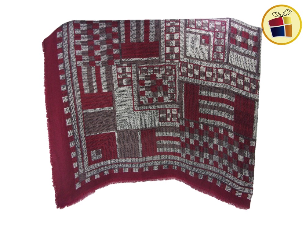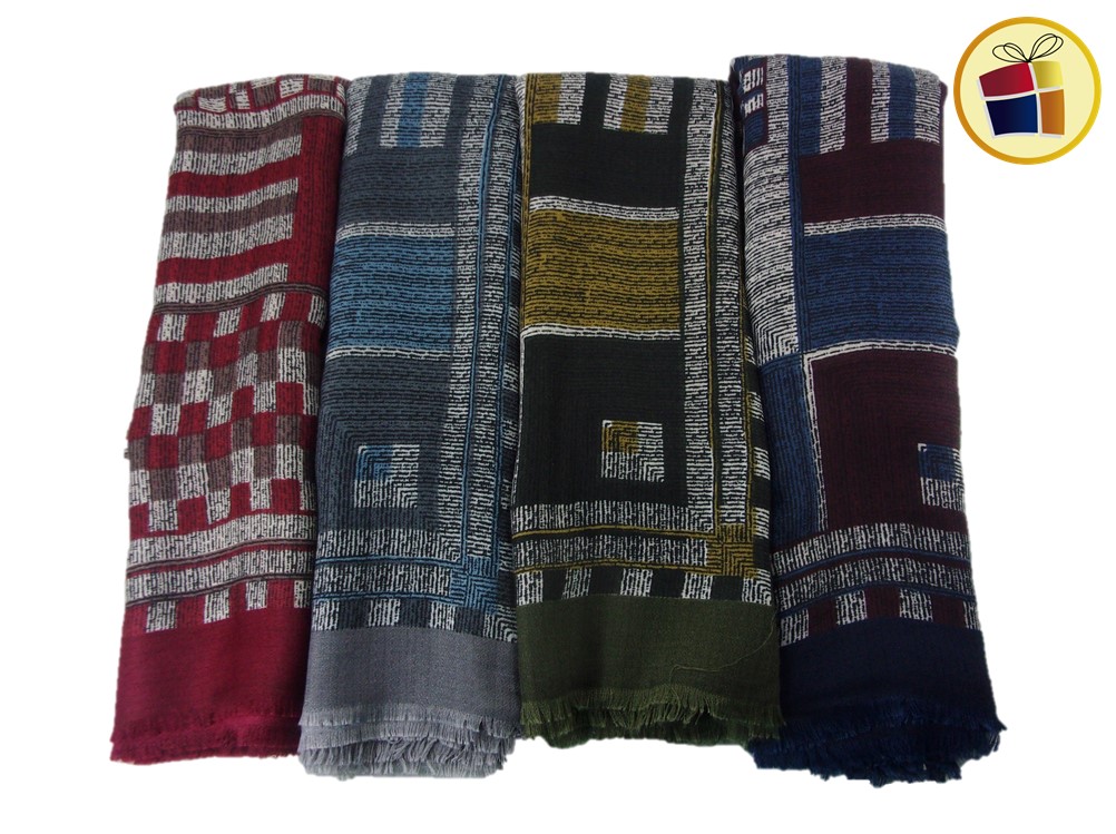 Chalina para dama gruesa cuadrada con una cominacion de colores con estampado cuadrados de distintos tamaños.