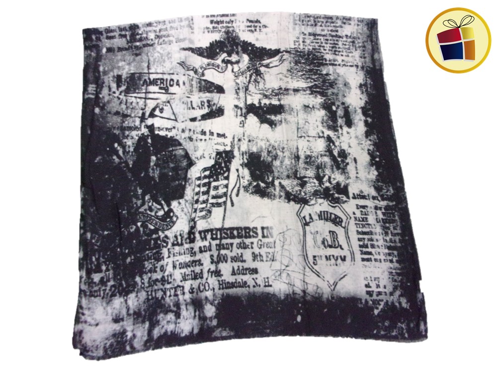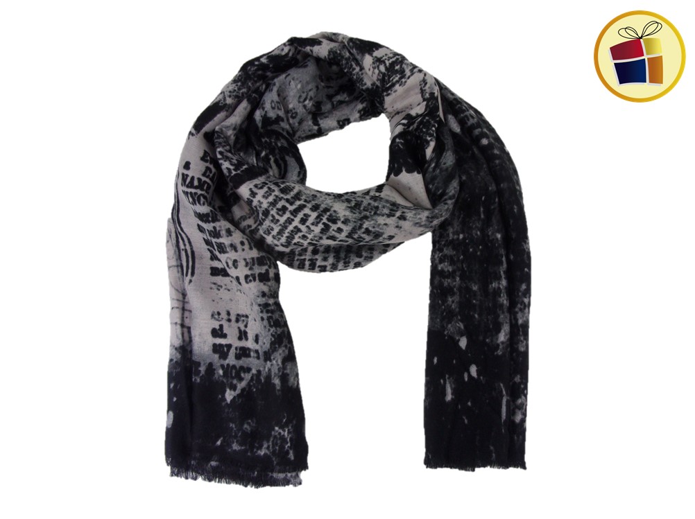 Chalina para dama rectangular gresa estampada con letras.
