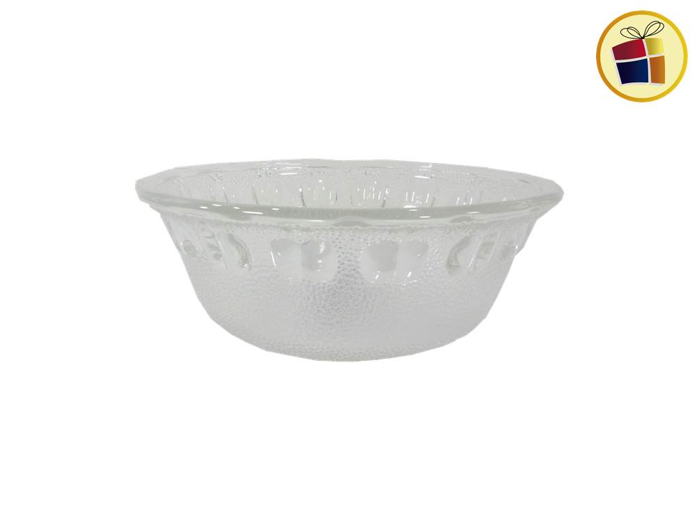 Compotera de vidrio, tallada por fuera con bordes moldeados