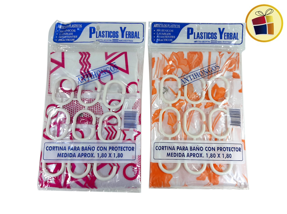 Con protector y ganchos plasticos, ojalillos metalicos, surtido en color y estampado.