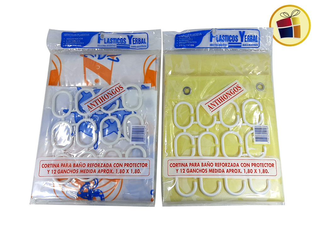 Con protector, con ojalillos de metal, con 12 ganchos incluidos, surtido en color y estampados.
