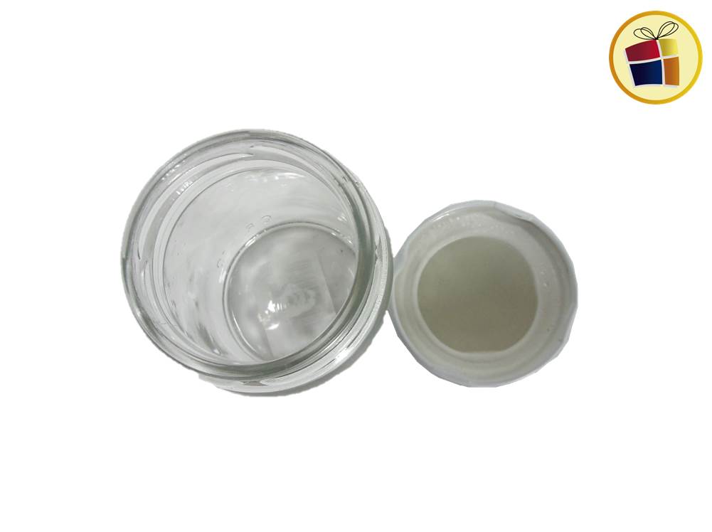 Frasco de vidrio con tapa a rosca de aluminio de color blaco