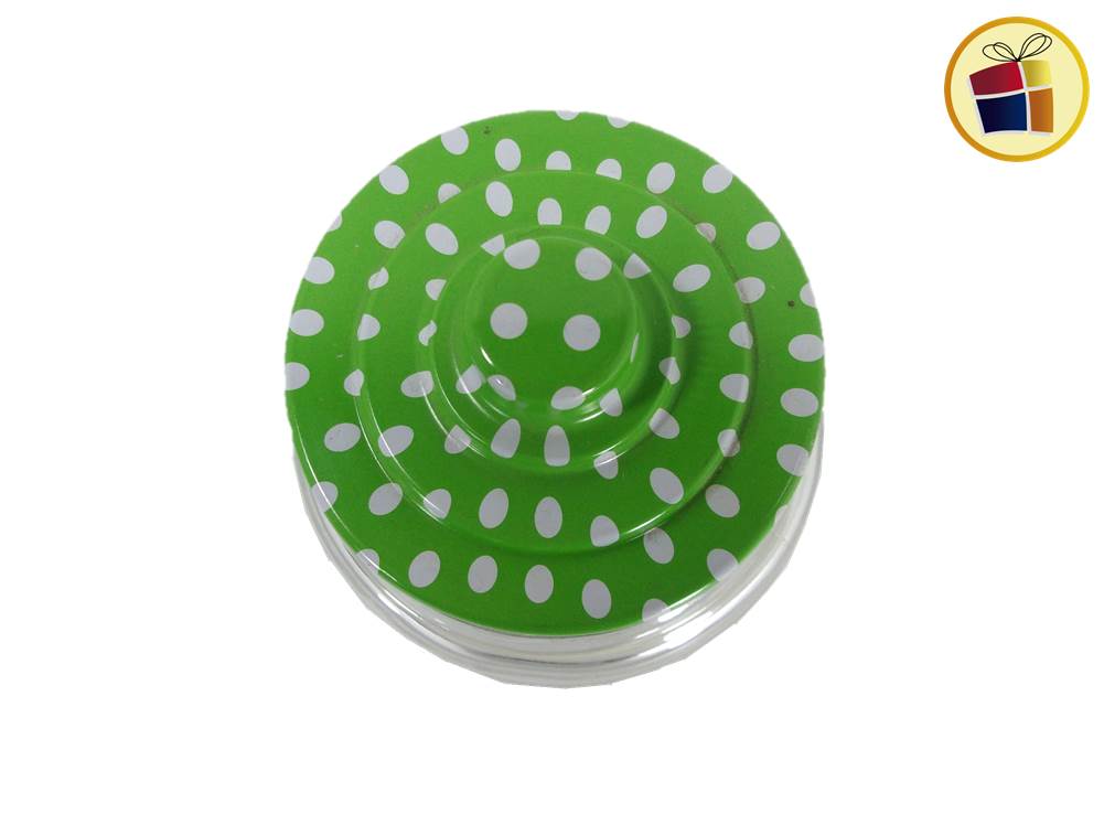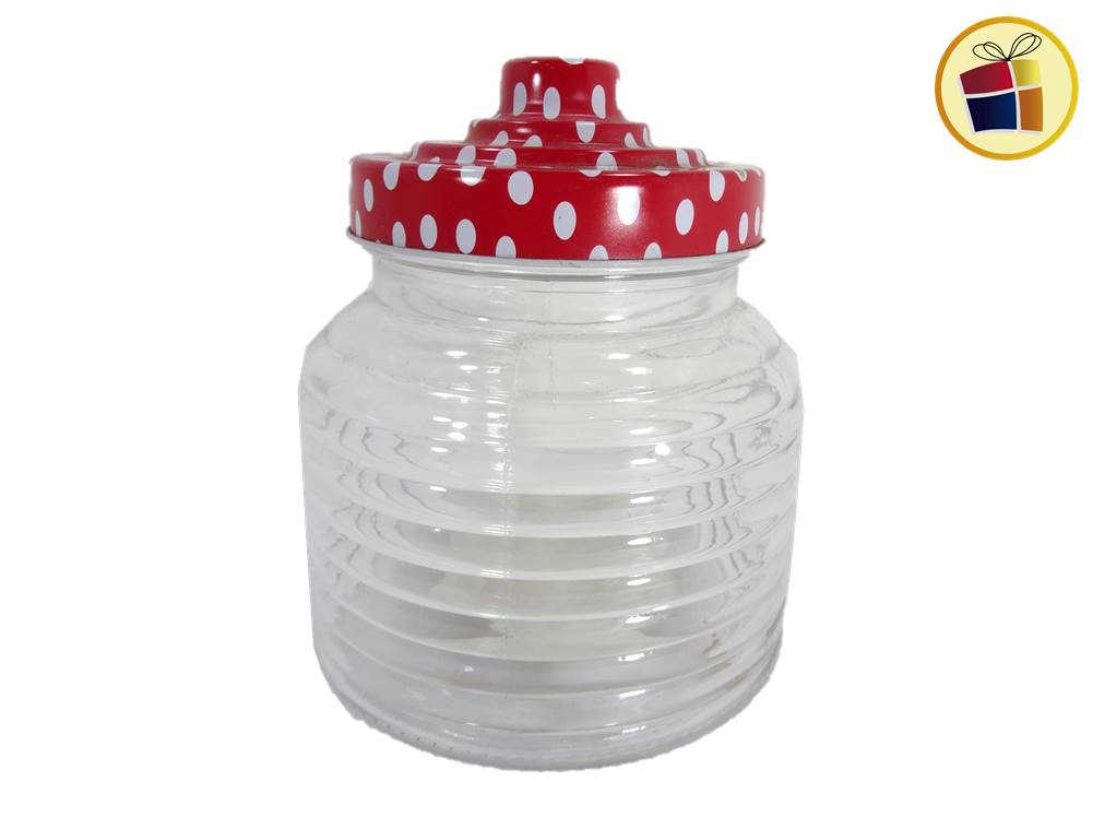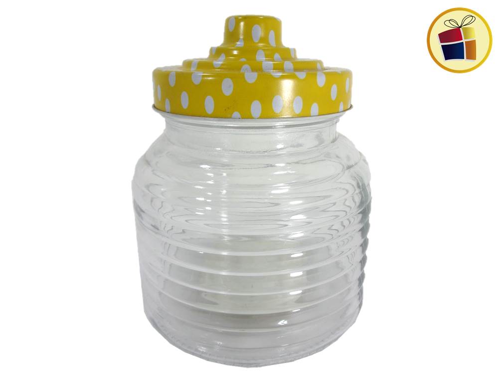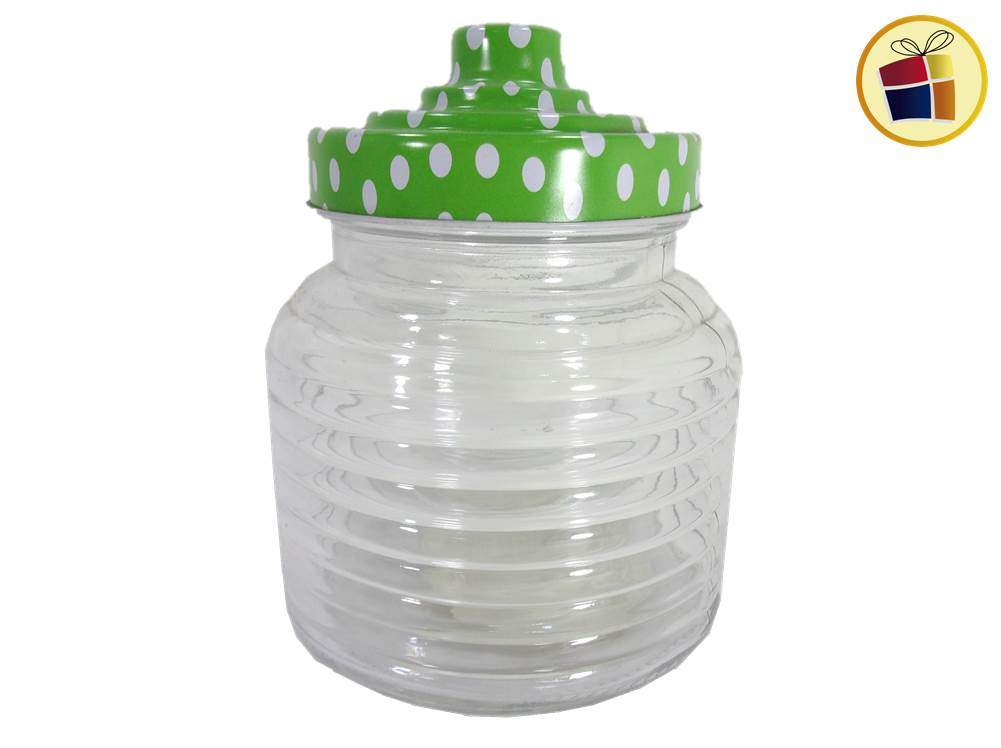Frasco de vidrio tallado rayas horizontales con tapa a rosca de acero color a lunares.