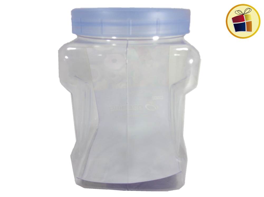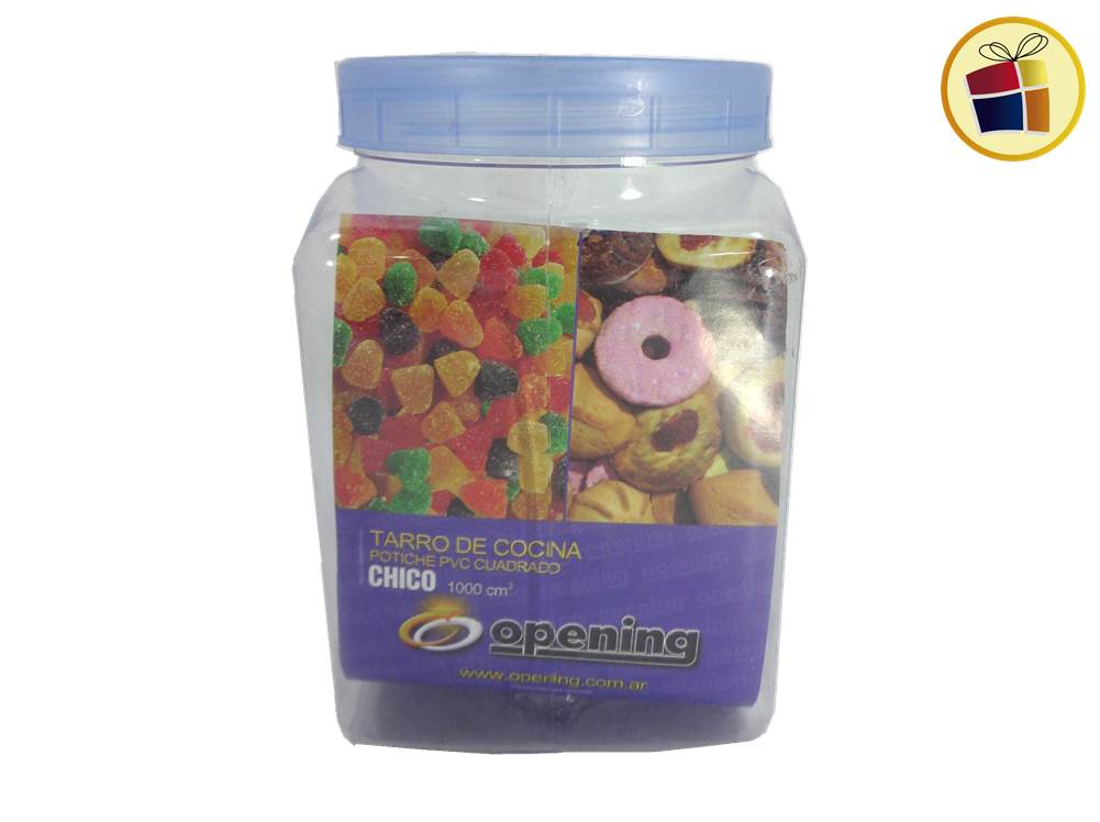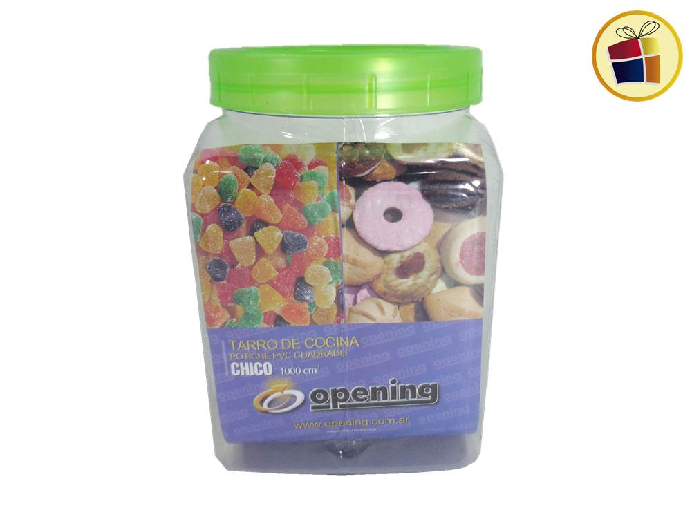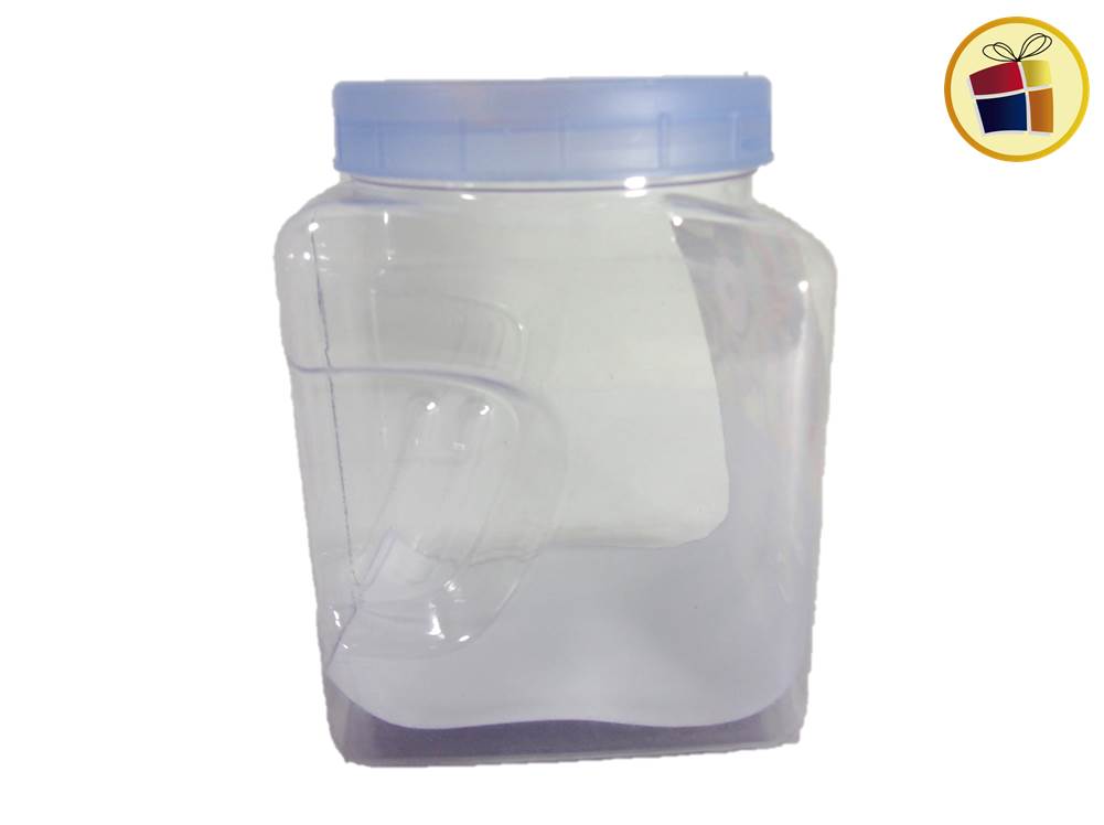 Frasco forma cuadrada de plastico con tapa a rosca de color.