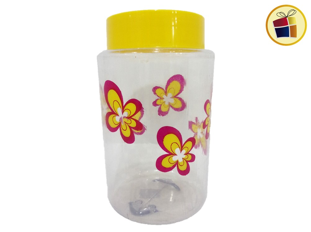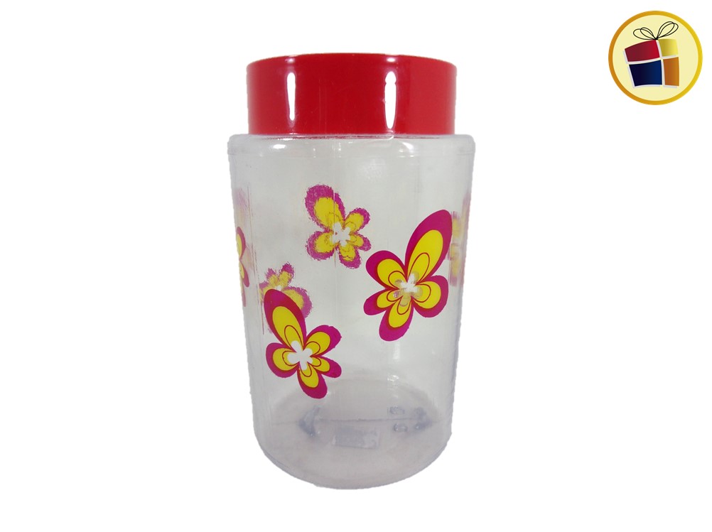 Frasco transparente decorado.