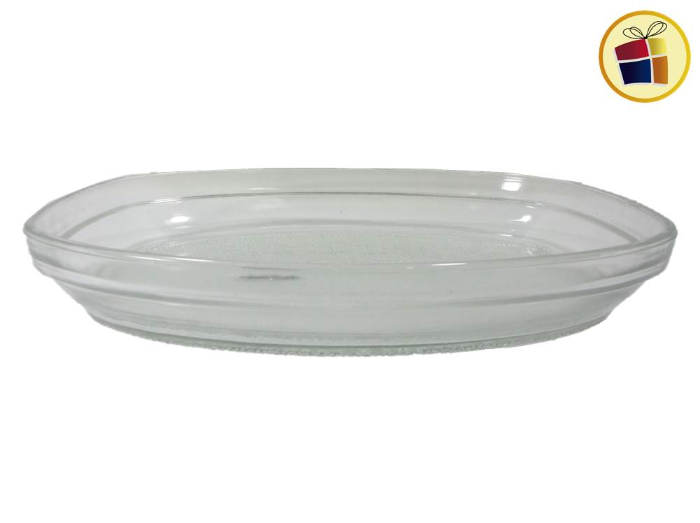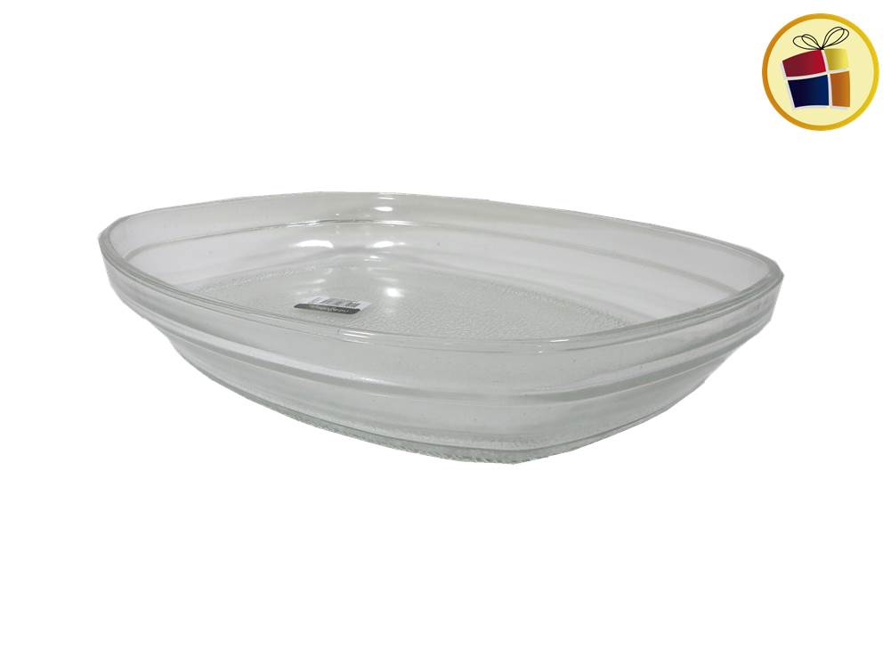 Fuente Oval Apilable de vidrio, en la parte de abajo esta tallada.