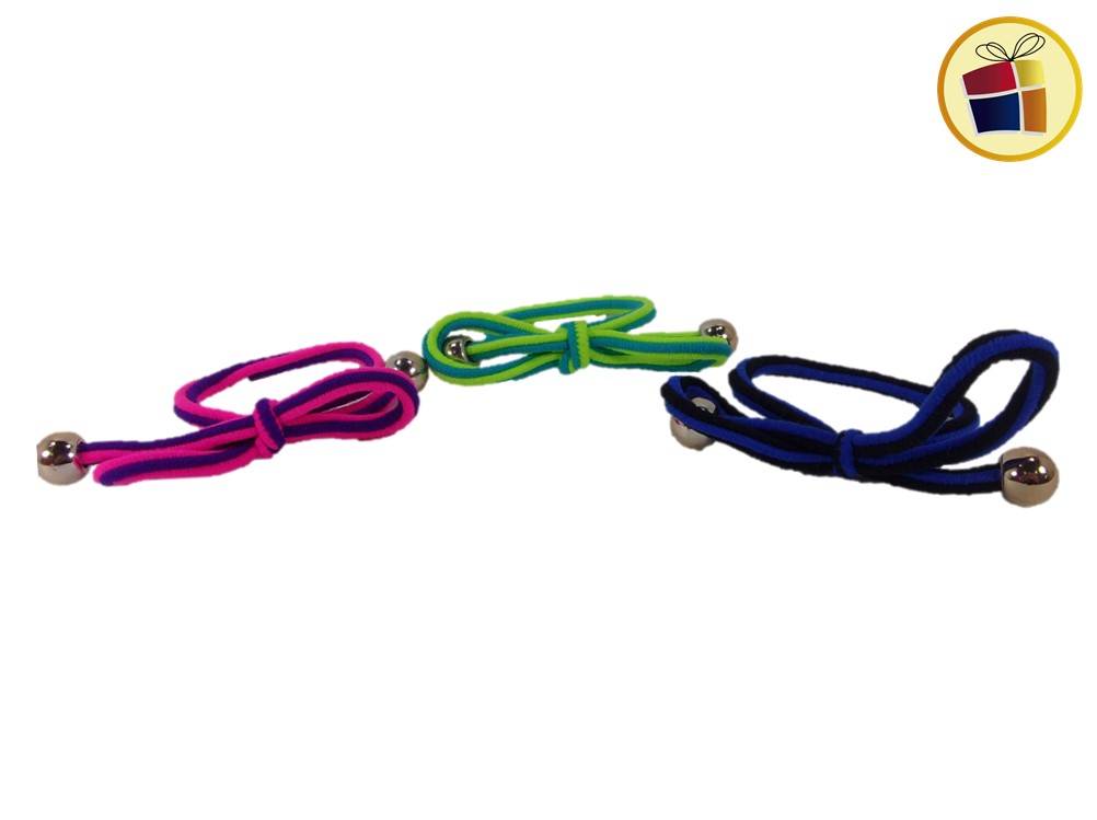 Gogo cordon rayado forma oño cor pelotitas dorada en la terminacion.