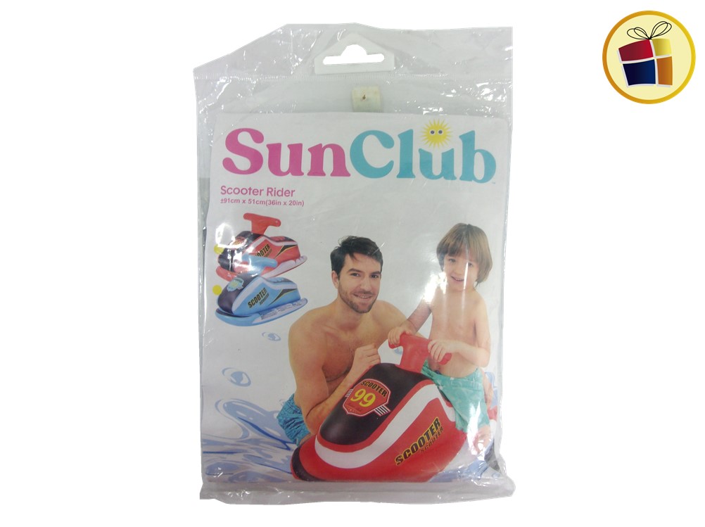 Infable forma de moto scooter de color de 91cm de ancho x 51cm de profundidad x 36cm de alto.