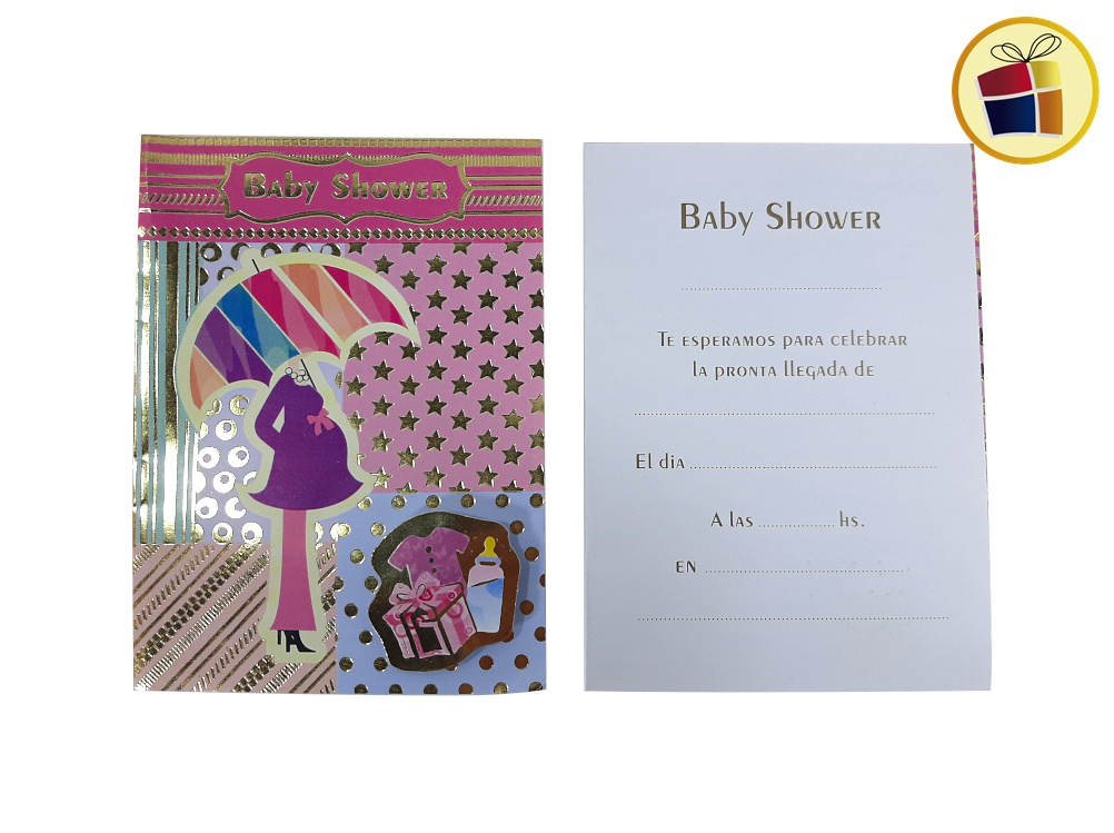 Estampado paraguita, para nena, con relieve de regalos, con 10 invitaciones.