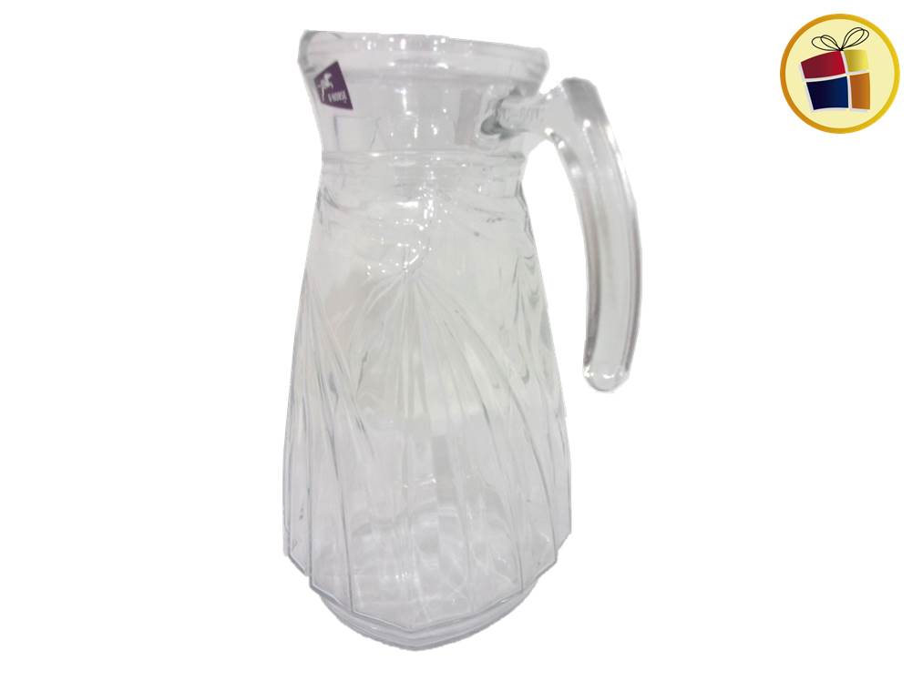 Jarra de vidrio tallada contiene tapa acrilica, la base es cuadrada.