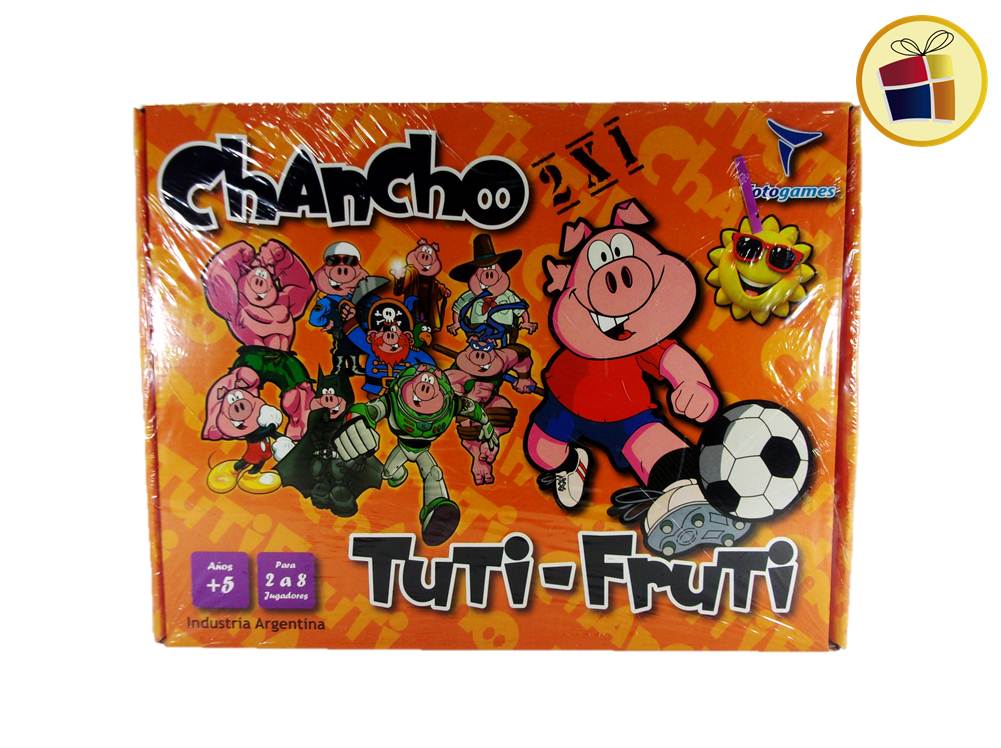 Para 2 o mas jugadores. Incluye (tuti-fruti) 1 mazo de 20 cartas de letras, 1 mazo de 40 cartas de categoria, 1 block para jugar tuti-fruti clasico. (chancho) 1 mazo de 40 cartas.