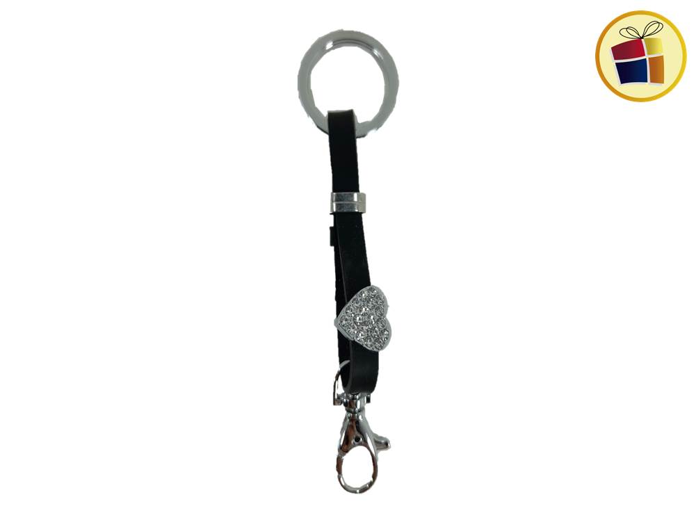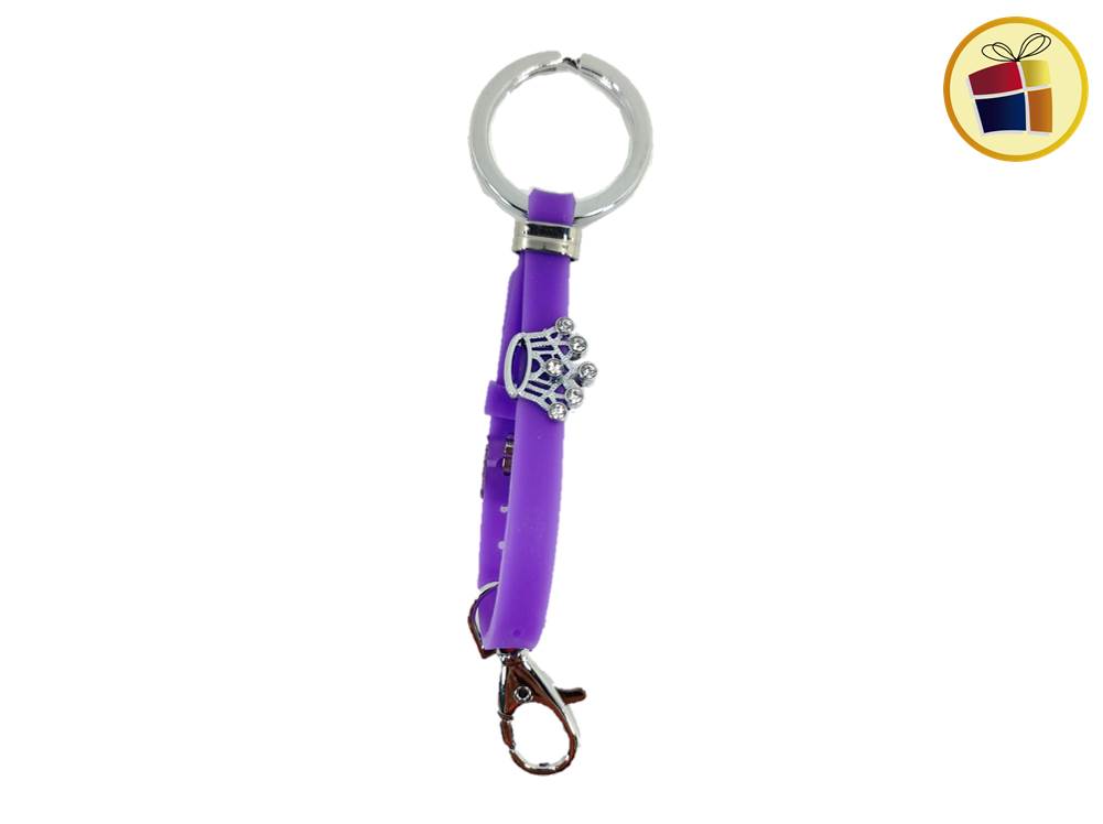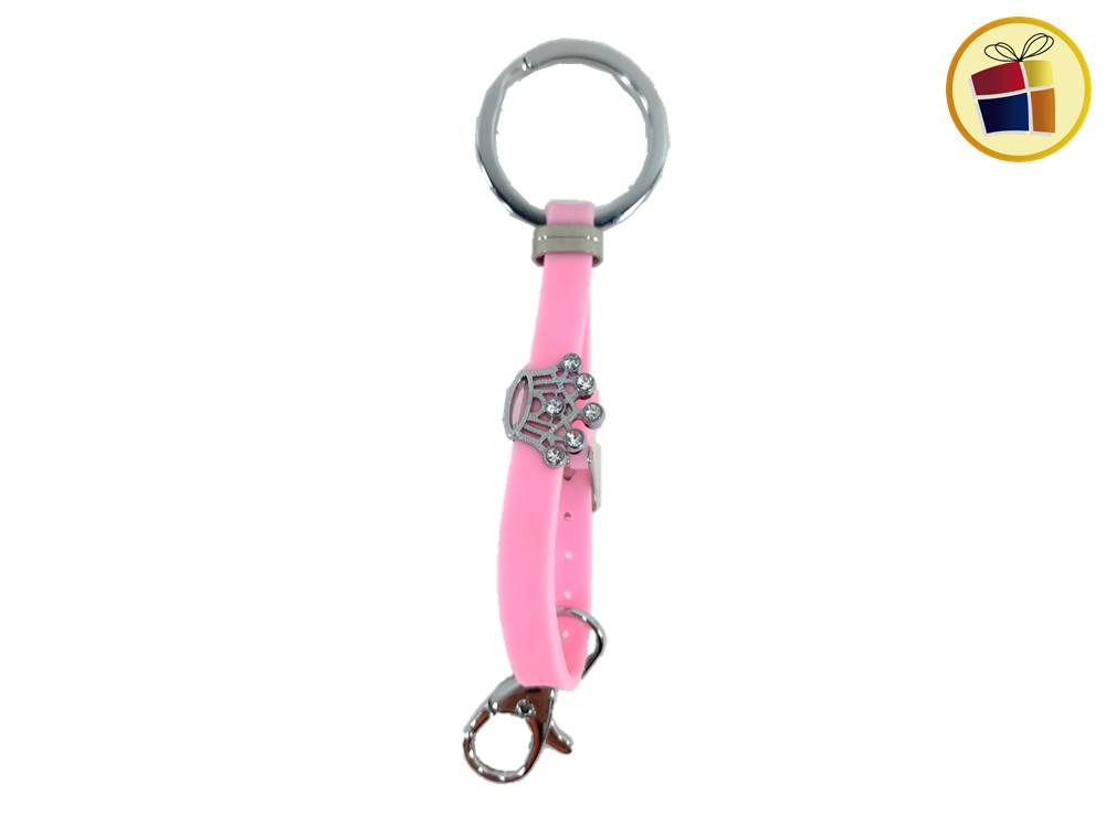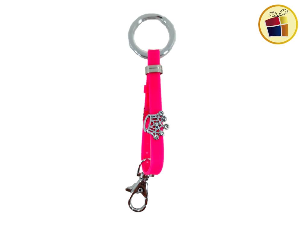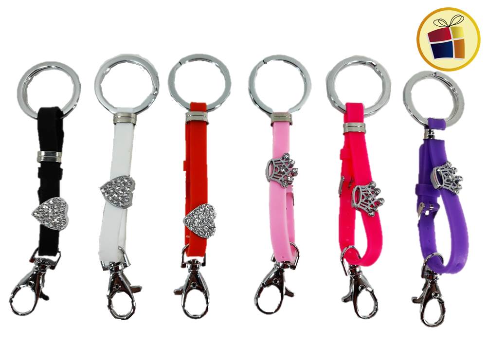 Llavero silicona con aplique de metal con stras, gancho y hevilla, estilo pulsera.