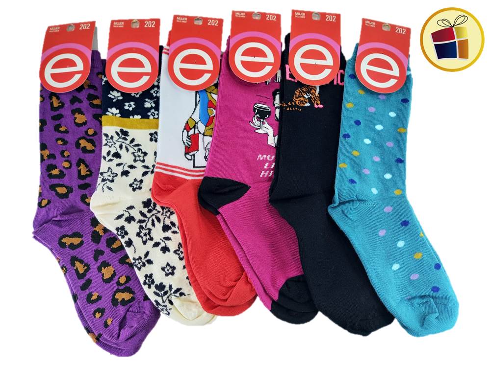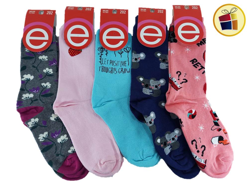 MEDIA LARGA PARA DAMA ESTAMPADA Y LISA ELEMENTO (02006/202)