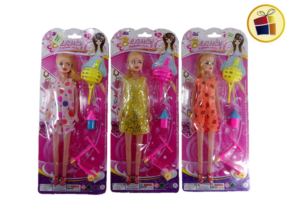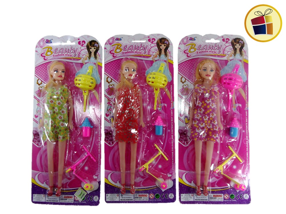 Muñeca flaca con scoters y casco variado en modelo de 27cm en blister