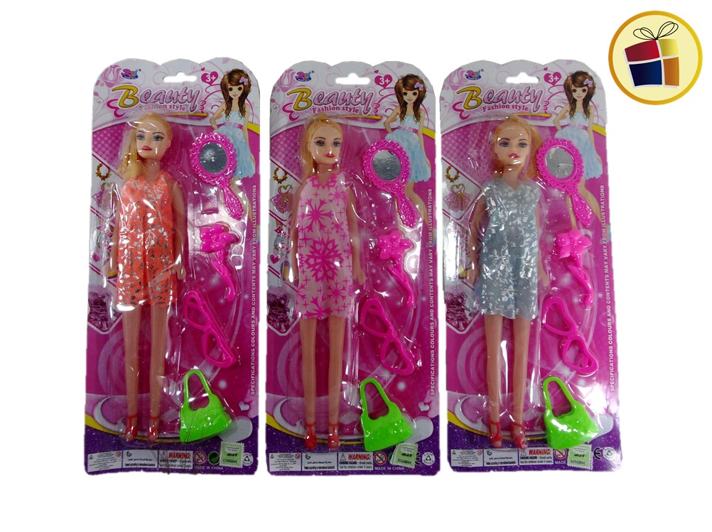 Muñeca flaca con cartera + anteojos + espejo de 27cm de altura variado en modelo en blister
