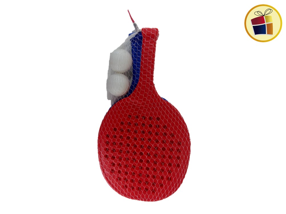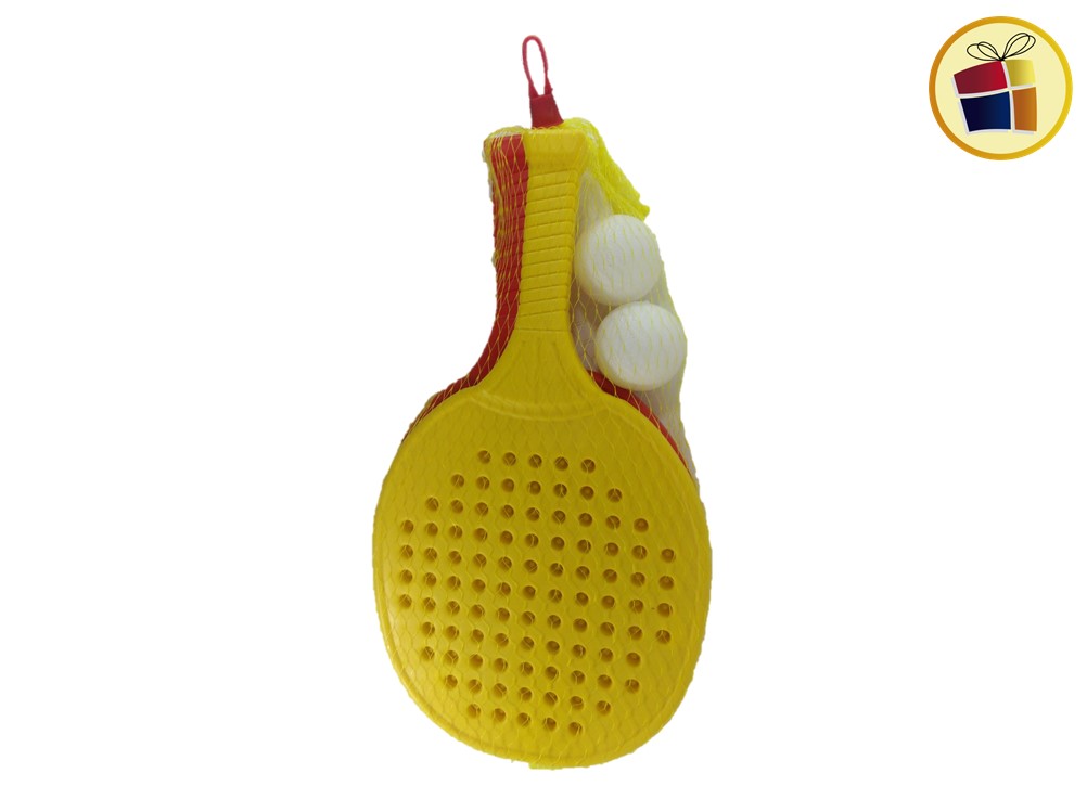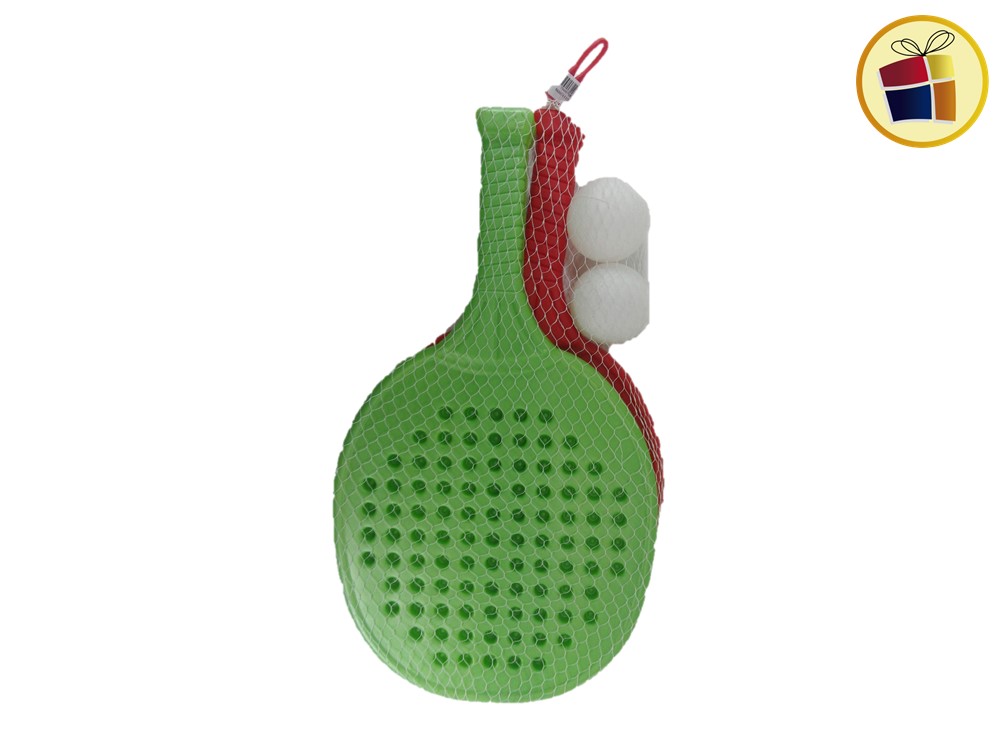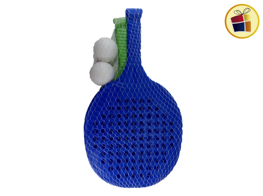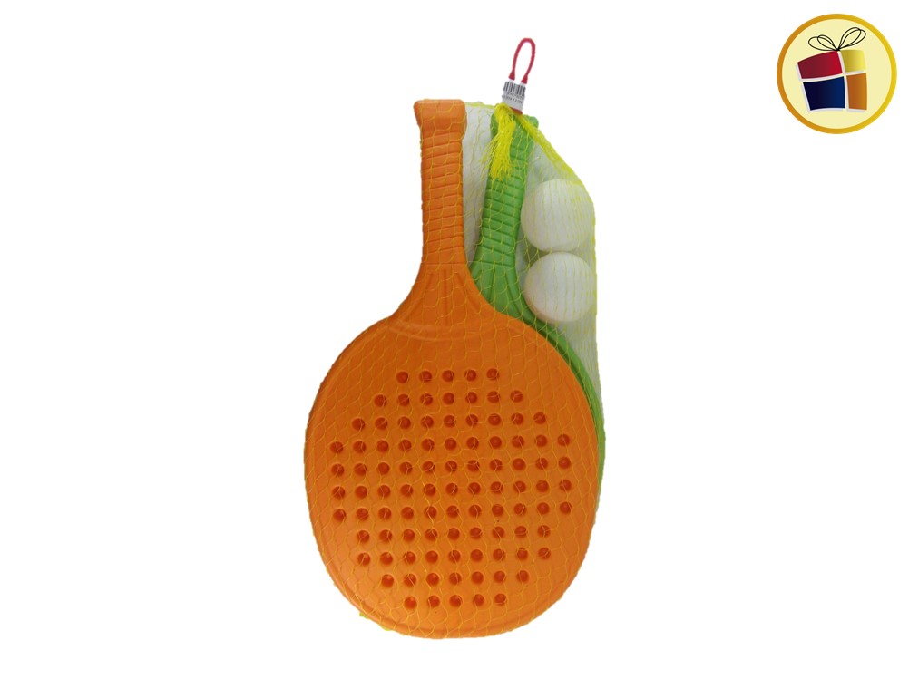Raqueta x2 con 2 pelotas en red de 42cm de color.
