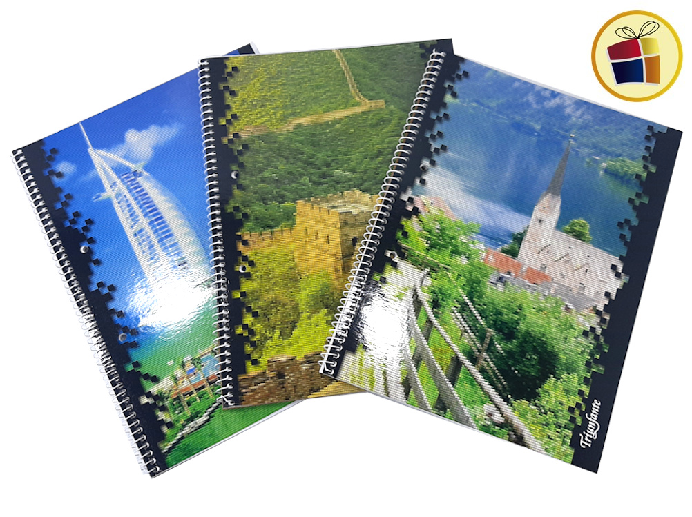 Cuaderno universitario 29.7 con espiral x80 hojas rayadas tapa pixelada, Marca: triunfante