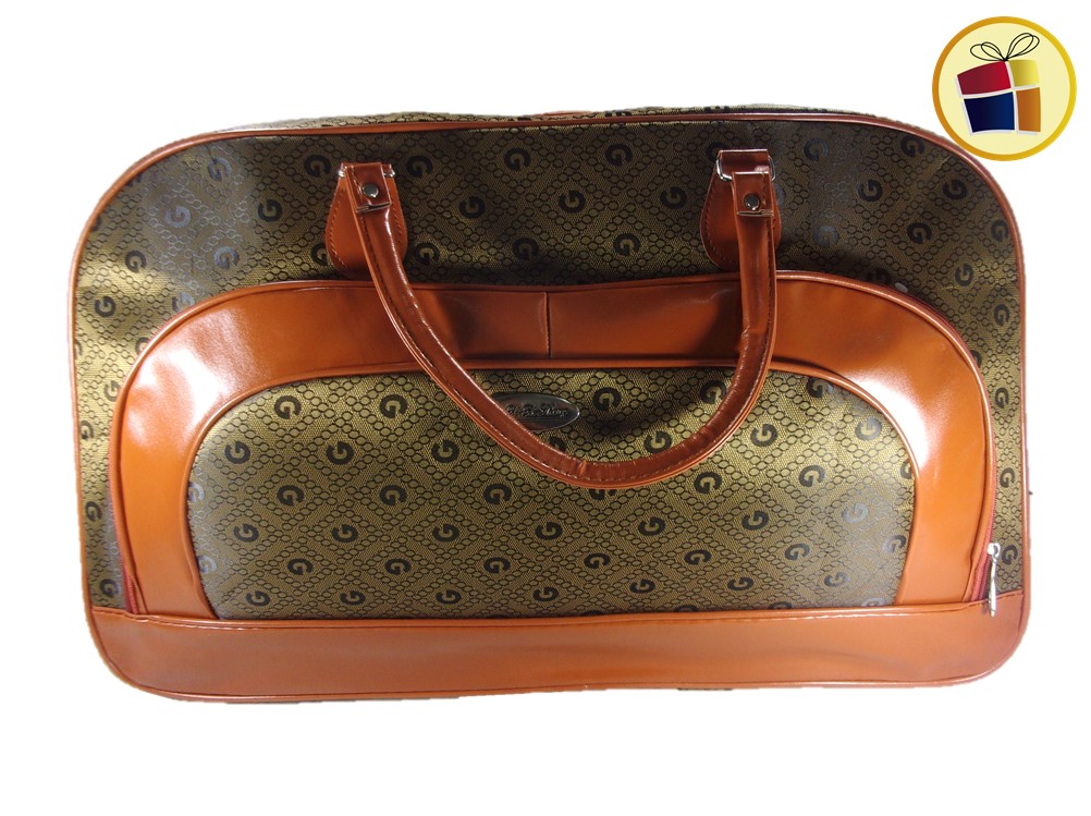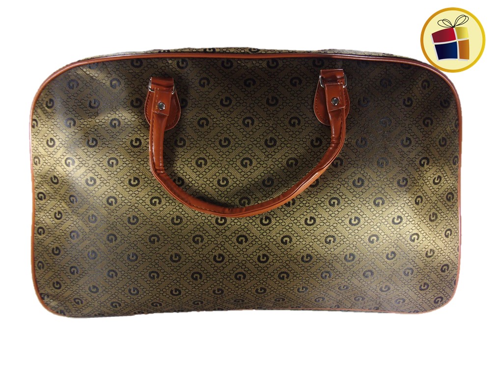 Bolso para dama oval grande estampado con bolsillos con dos cierres, con manijas y correa.