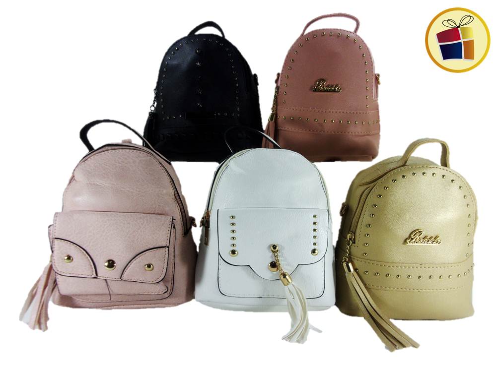 De cuerina con tachas, correa regulable y manija, con interior forrado, surtido en modelos.