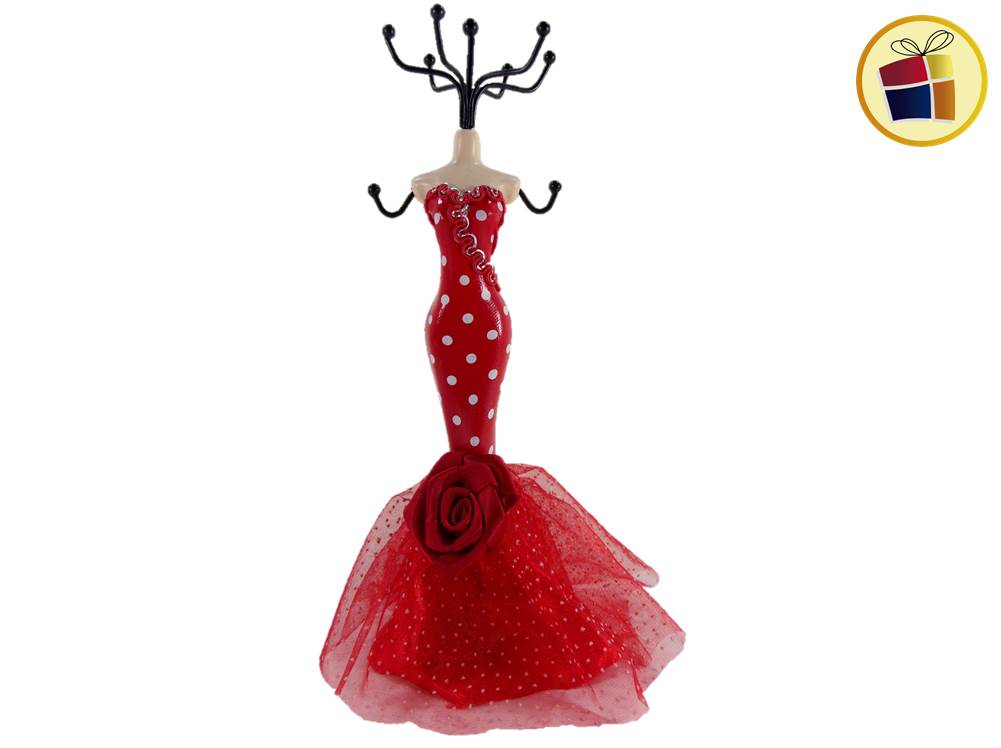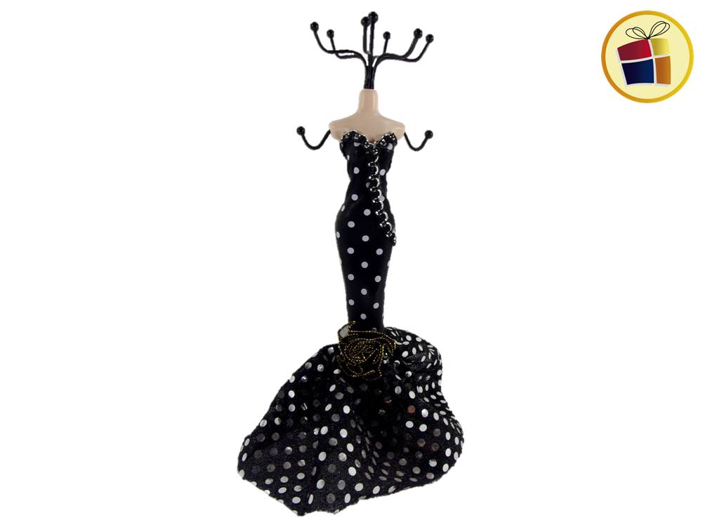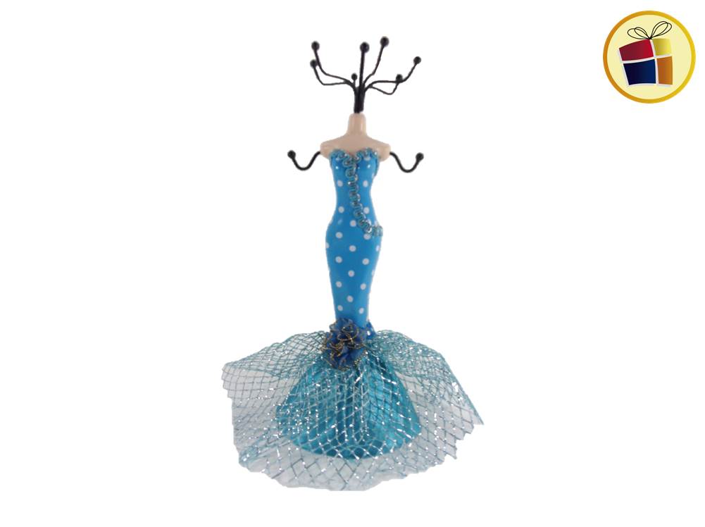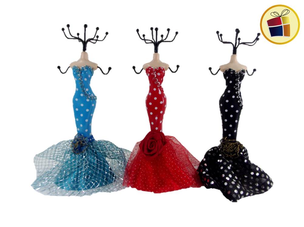 PORTA BIJOU CON FORMA DE MUJER con vestido a lunar con red/tul brilloso.