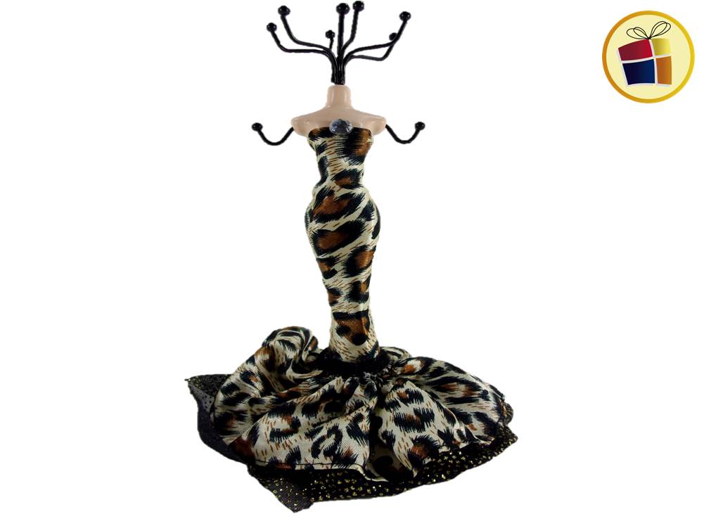 PORTA BIJOU CON FORMA DE MUJER con vestido animal print.