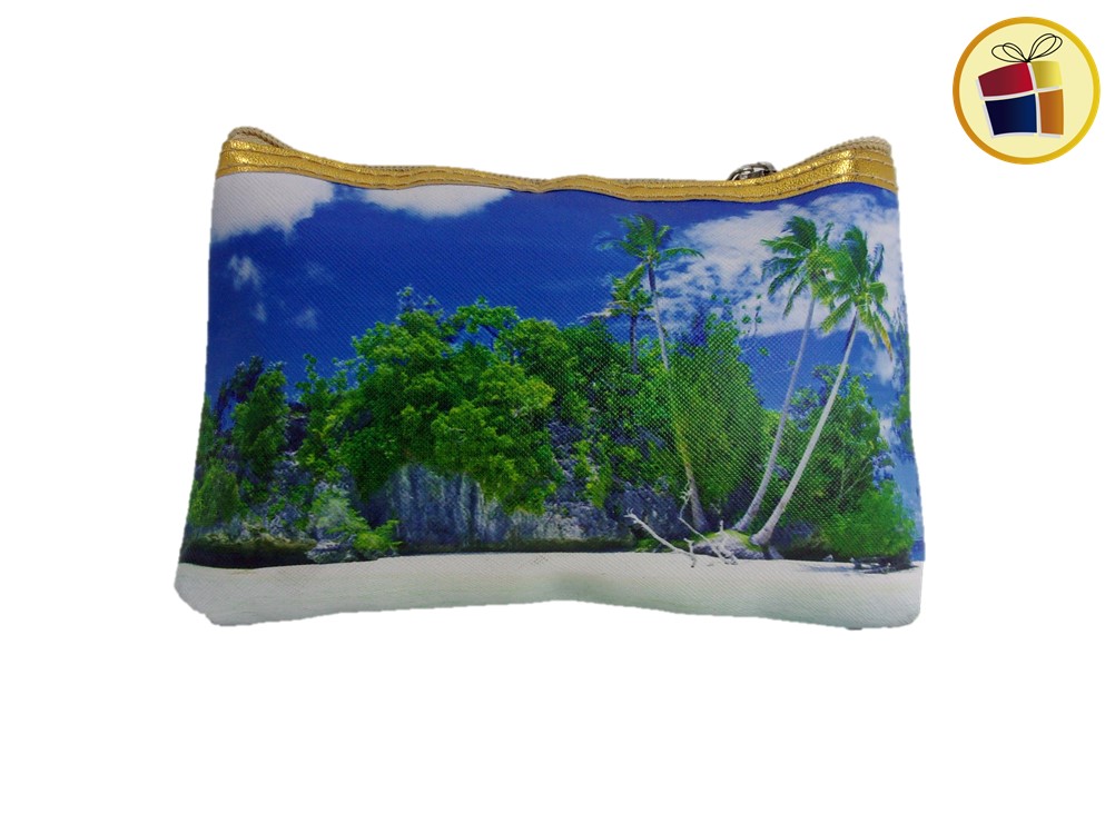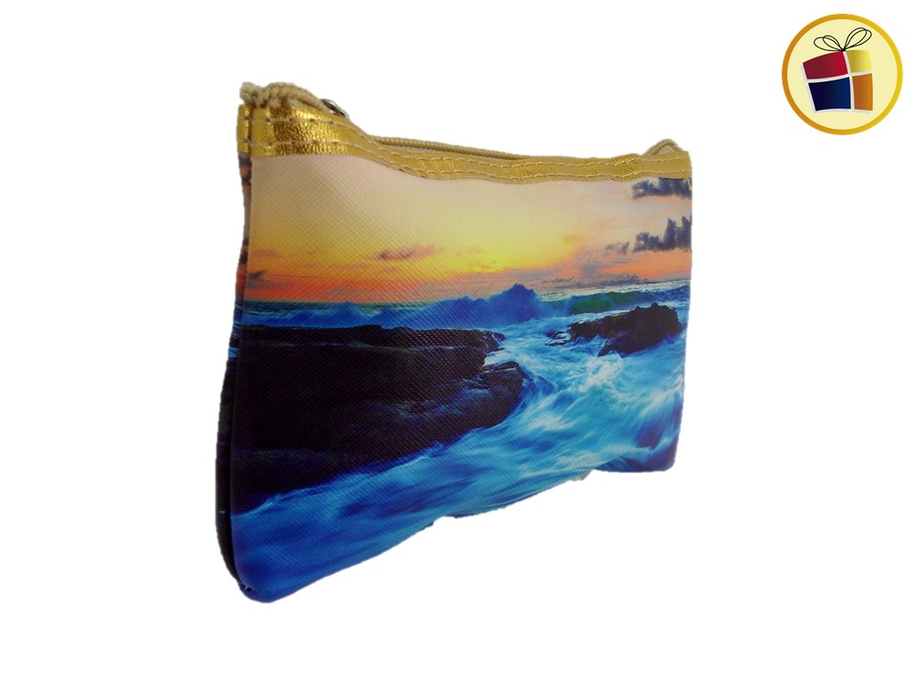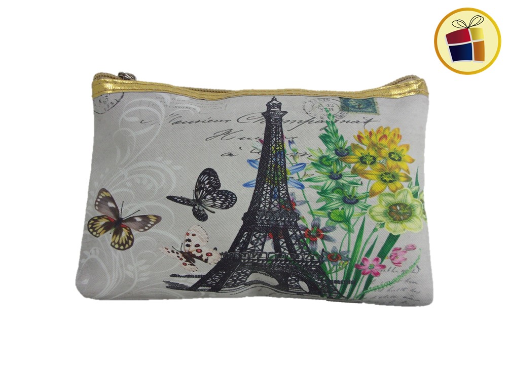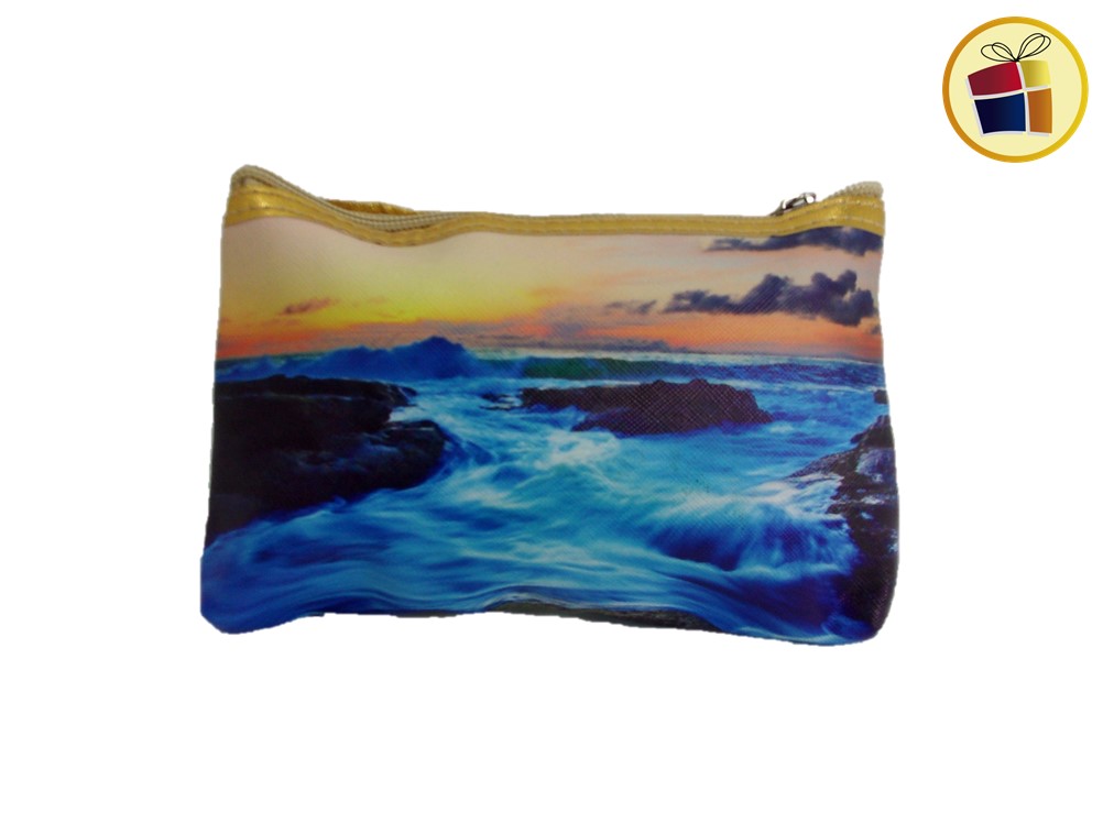 Porta cosmetico de cuerina, surtido en estampado de diversos lugares, amplio y practico.