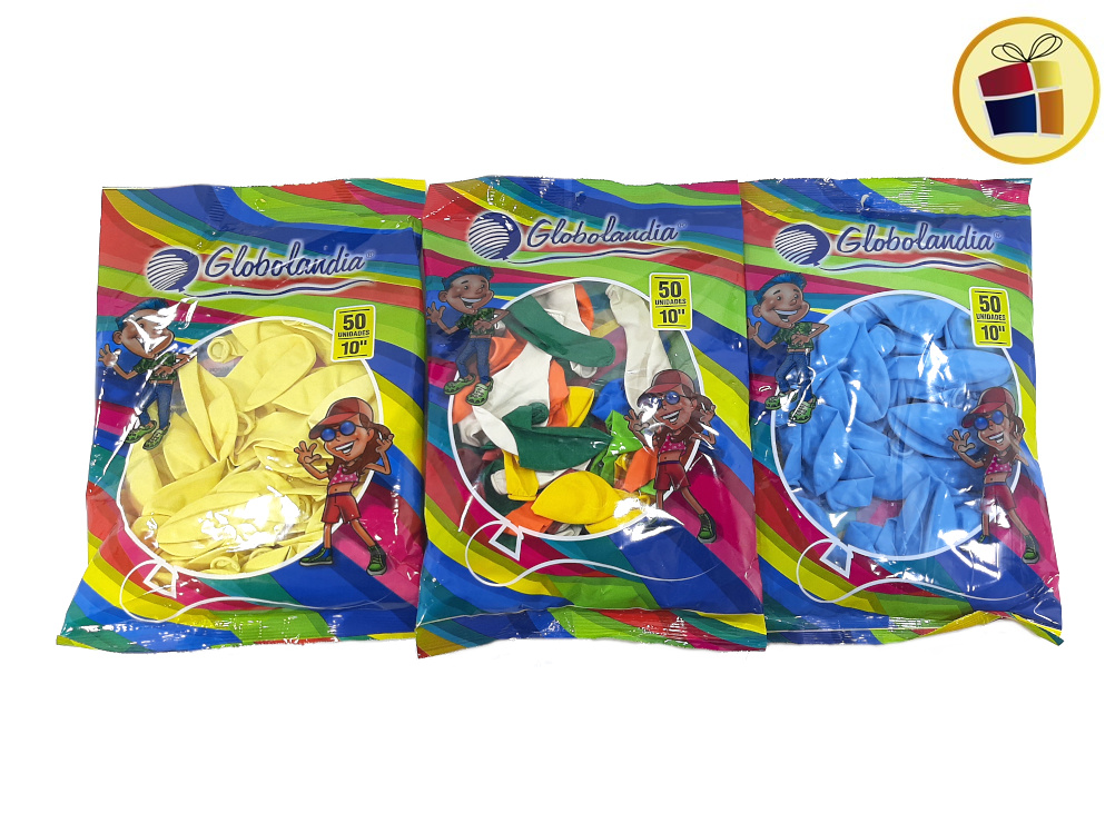 (P.G.ST.R.C1.C2.F.B.RCIA)GLOBO 10" X 50 UND ESTANDAR/PASTEL COLORES SURTIDOS (600049) GLOBOLANDIA