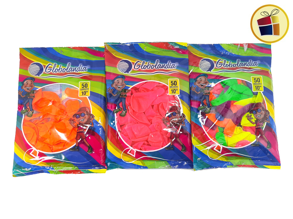 (P.G.ST.R.C1.C2.F.B.RCIA)GLOBO 10" X 50 UND FLUOR COLORES SURTIDOS (600247) GLOBOLANDIA