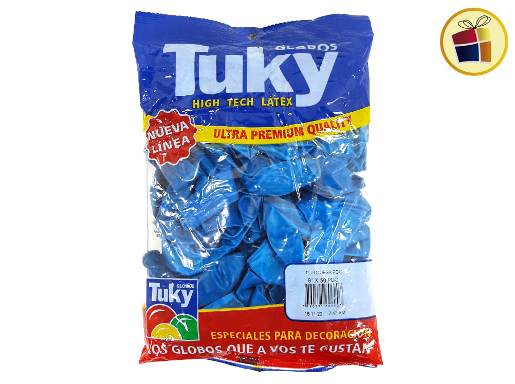 (P.VA.)GLOBO TUKY TURQUESA 9" X50 UND (000482/6069/06907) DERPOL TUKY