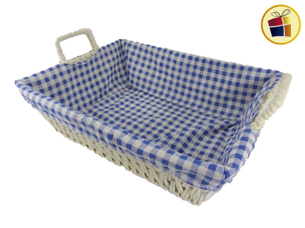 Panera de fibra entrelezada rectangular con tela y manijas.
